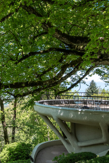 Built in the 1960s on a Savoyard-style building housing a former café-restaurant, ‘La Cantine du Polonais’, its architecture is a blend of the traditional and the organic. It celebrates the extraordinary vision of Pascal Häusermann, a Swiss architect specialising in bubble houses. The owners choose him to design and build their family home, like a refuge. With its curves, natural materials and overhanging terraces extending the interior spaces, the property combines to form harmony between the habitation and its natural world.