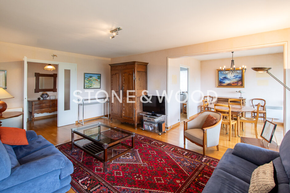 3-bedroom flat of 112 sqm with balcony and private garden. It includes a spacious living room with a large south-facing balcony, a separate equipped kitchen, 3 bedrooms with garden access, bathroom, shower room and separate WC. Possibility of creating a 4th bedroom. Work needed.