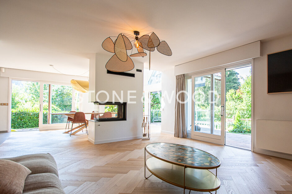 In a sought-after district on the heights of Annecy-le-Vieux, this villa enjoys a privileged setting, close to the small Port and the lake.In absolute calm, the property is set on a lovely wooded and lanscaped plot of 760 sqm with beautiful fruit trees and a large swimming pool. Filled with natural light thanks to its South-West exposure, this former architect-designed house has approximately 200 sqm of usable space spread over several half-levels (+ garage and large cellar with skylight).It comprises an entrance hall with cupbords, a large living room with an open plan fitted kitchen and a pantry. 3 large bedrooms, a bathroom, and a small shower room. On the lower level, a suite (bedroom + shower room) offers the ideal accommodation for family or friends.A garage of 25 sqm, a laundry/boiler room and a large crawl space currently used as a wine cellar and storage space complete this beautiful set.DPE: EAgency fees chargeable to the sellerYour contact: