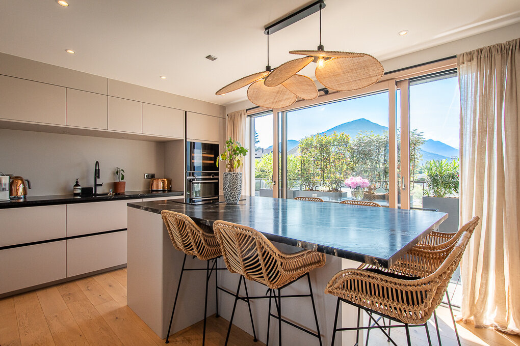 On the top floor of a modern building located in a sought-after area on the heights of Annecy-Le-Vieux.