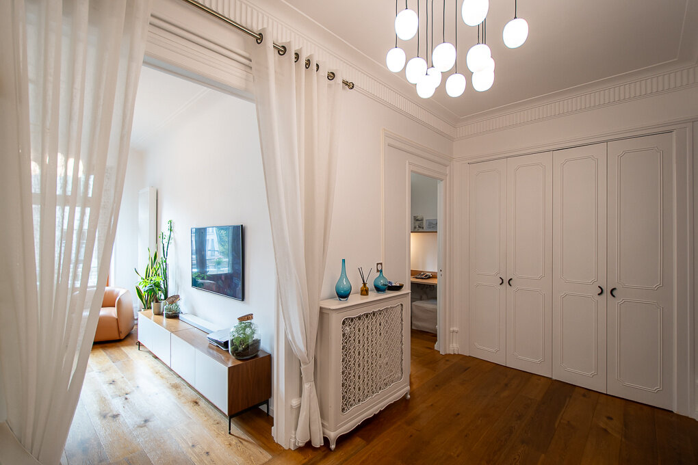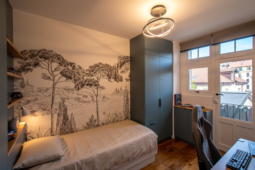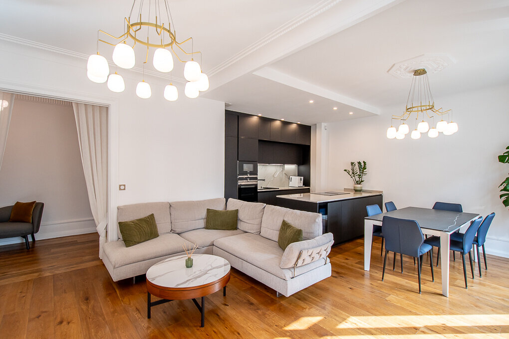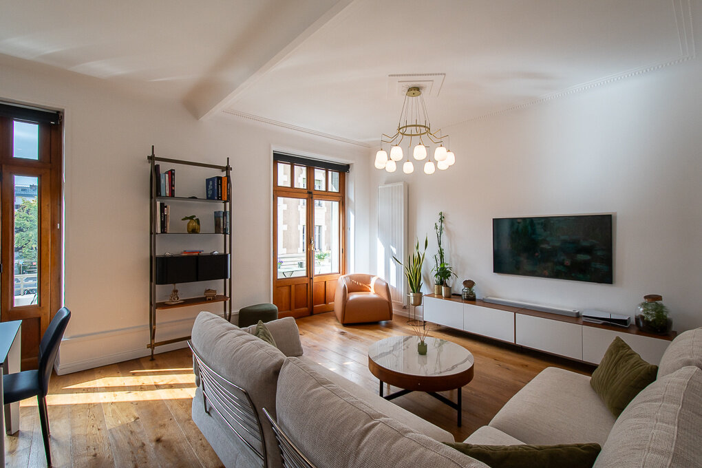 Nestled in the heart of Annecy, in a 1930s building with an elevator, this charming 3-bedroom flat of 94 sqm (Carrez law) has been fully renovated. Elegantly combining the charm of the old with modern comfort, it stands out for its beautiful, light-filled volumes, decorative moldings, and high-quality finishes.