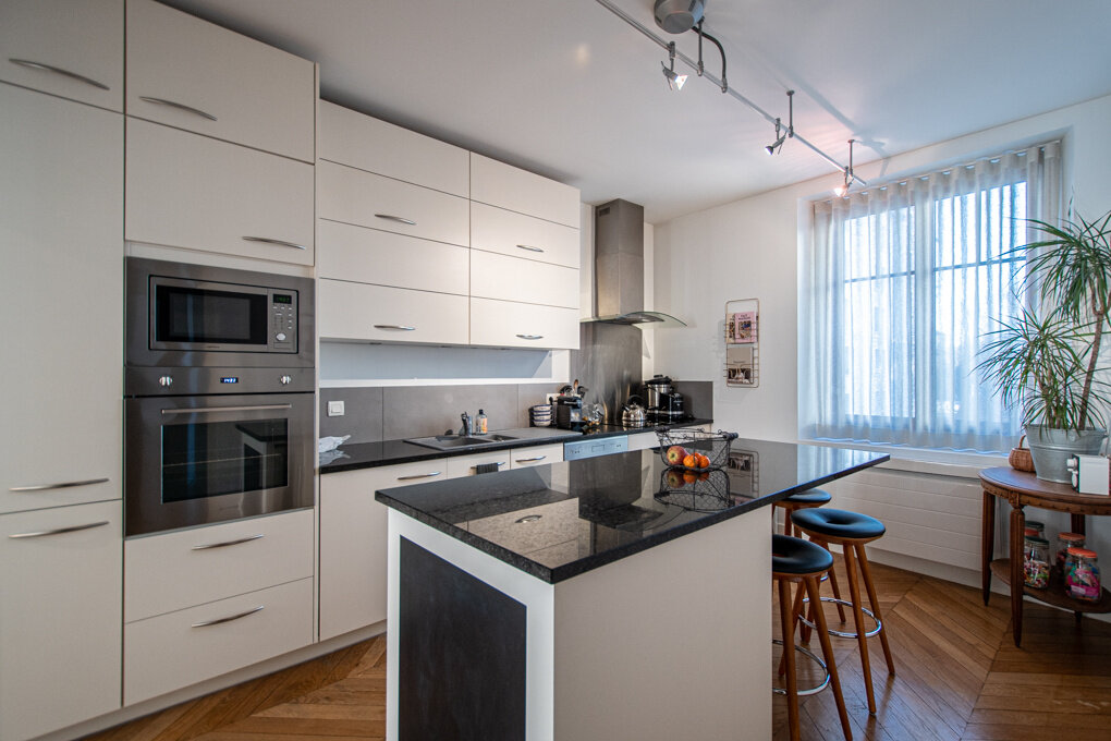 In the city center, charming and bright 4 rooms apartment of 80.20 sqm located on the 1st floor out of 4 of a building dating from the 1930s. Large living room with semi-independent fitted kitchen, dining area and lounge. Night area composed of 3 bedrooms, one with balcony. Shower room and separate toilet. Attic and cellar. Close to all amenities. DPE: C