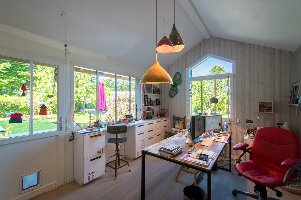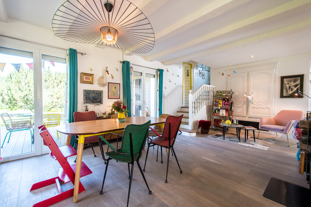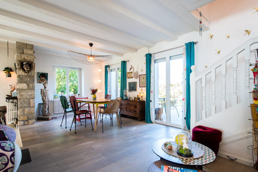 Semi-open and equipped kitchen with pantry and laundry, large living room with a dining room and a lounge with a wood-burning stove and several access to a large terrace. 3 bedrooms and 1 office, 1 bathroom and 2 Wc. Numerous storage. Closed garage.