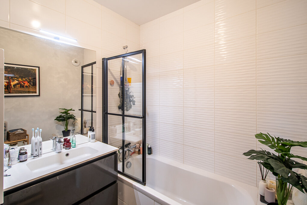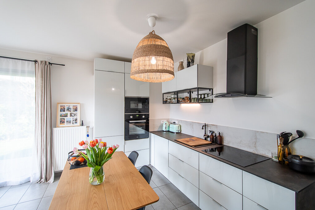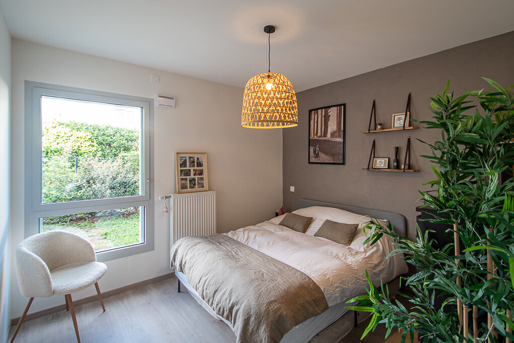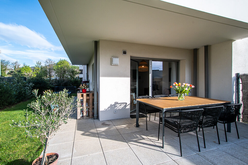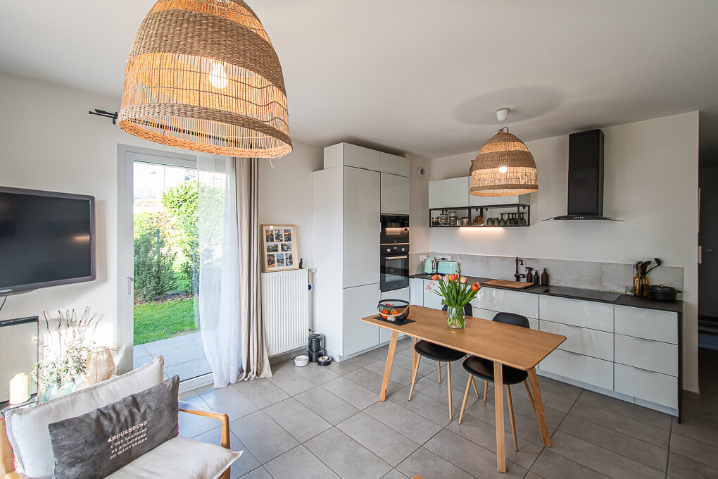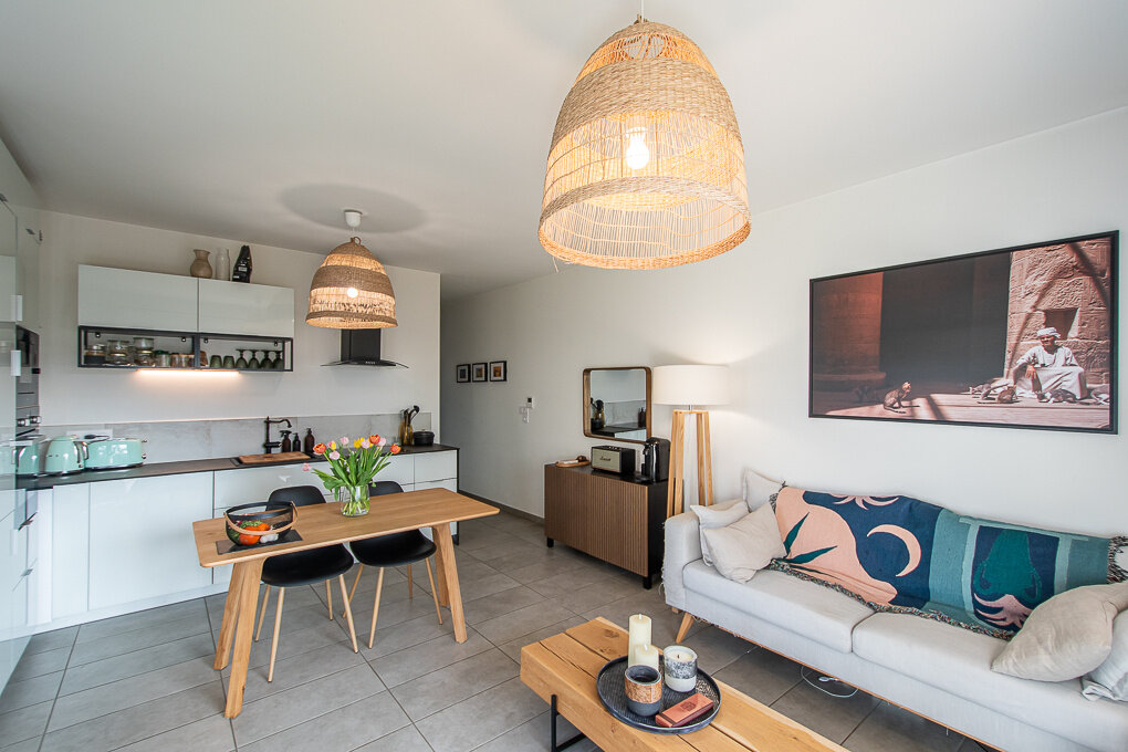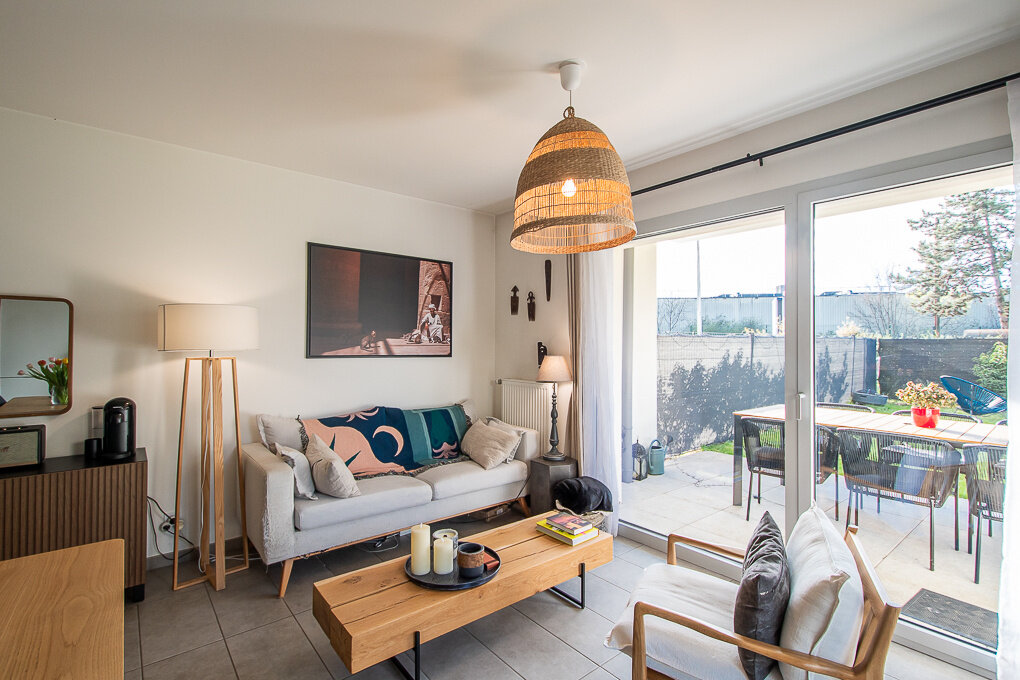 Modern 2-bedroom flat of 55 sqm with a private garden situated in a 3-storey buiding dating from 2020. It comprises a lounge/living room with an equipped kitchen opening onto the terrace/garden. Night area with 2 bedrooms, a bathroom and a separate toilet. Cellar and bike room. Visitor parking spaces.