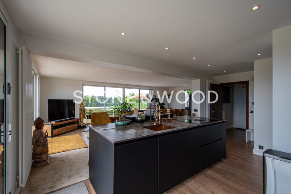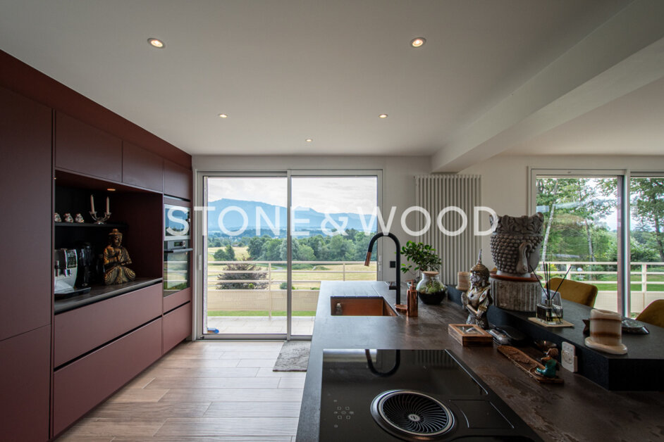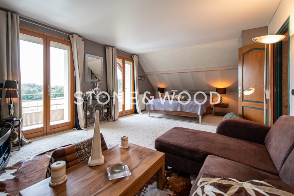 It includes a beautiful living room filled with natural light thanks to its large windows offering beautiful views over the surrounding countryside. This latter comprises an open-plan equipped kitchen, a dining room and a TV lounge with a wood-burning stove. 4 bedrooms with built-in wardrobes, including a large master suite with balcony and lounge. Bathroom and shower room.
