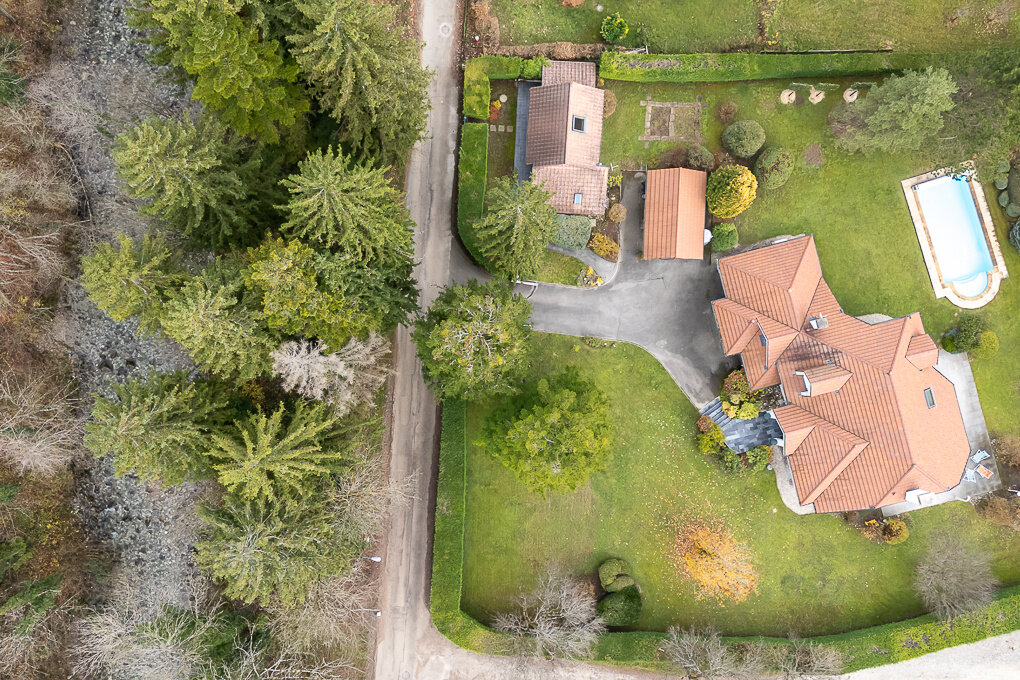 In an unspoilt natural setting, this property of approx. 240 sqm unfolds at the heart of a beautifully landscaped 2,700 sqm plot, featuring a swimming pool and a charming guest house. Inspired by Canadian-style residences, it offers a warm and soothing atmosphere, a true haven of tranquillity surrounded by river, fir trees and mountains.