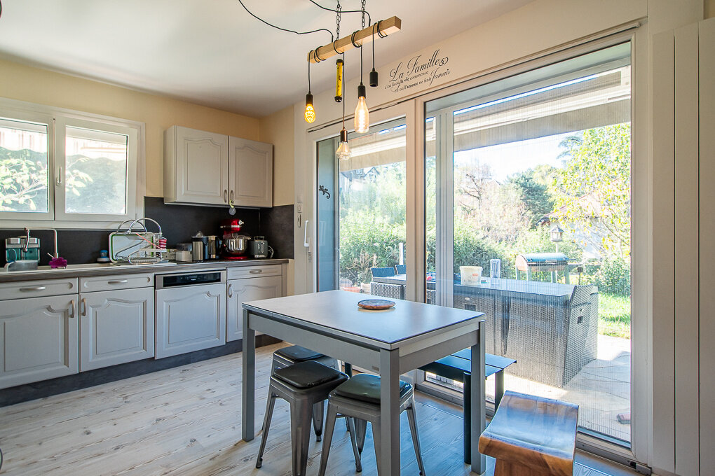 Property of approx. 187 sqm divided into 2 flats. On the garden level, a 2-bedroom flat comprising a living room with woodstove and terrace access. Separate equipped kitchen. 2 bedrooms. Bathroom and separate toilet. Upstairs, a 3-bedroom flat with balcony and lake views comprising a living room and an equipped kitchen. 2 bedrooms and a bedroom/study area. Shower room and separate toilet. Full basement with laundry room, cellars and double garage. Carport. DPE: E