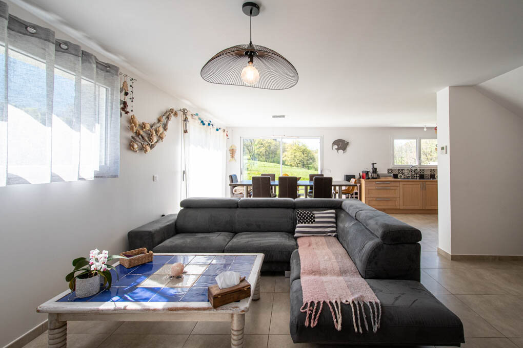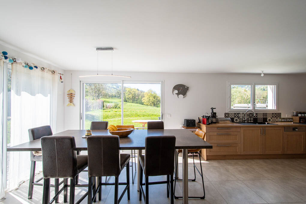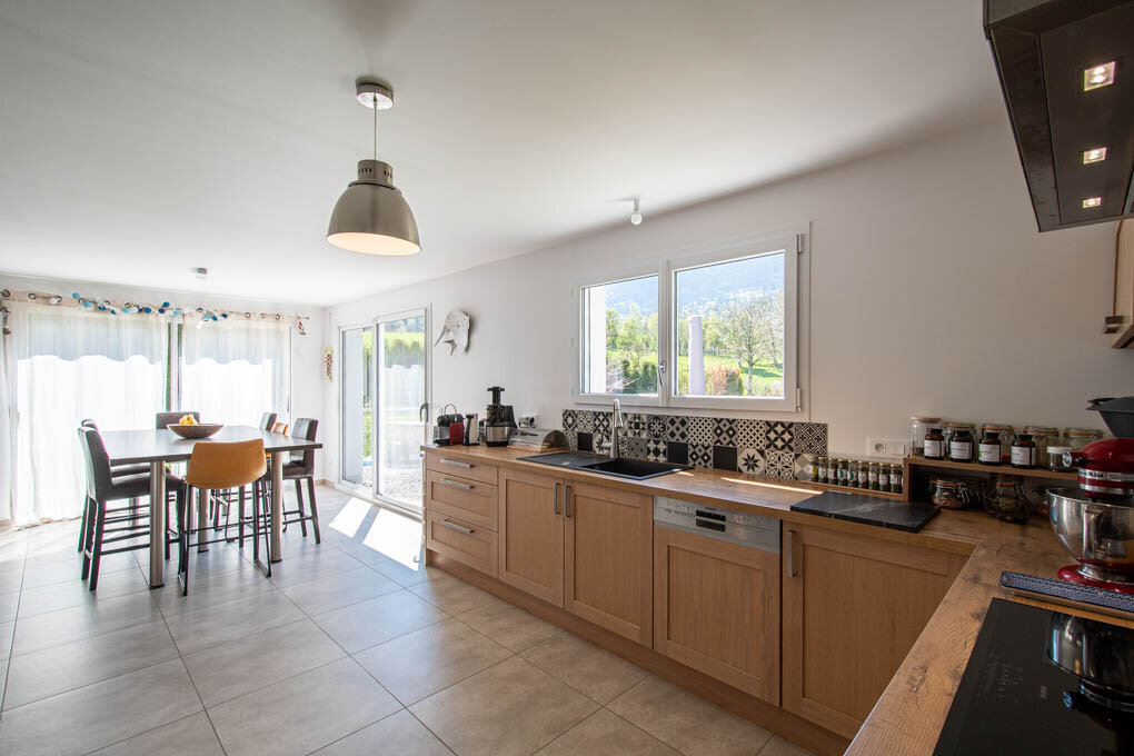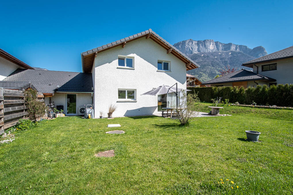 In a beautiful setting, green and peaceful, only 20 min from Annecy and La Clusaz, 10 min from the lakeModern semi-detached villa built in 2017 with a habitable space of 106 sqm of spread over 2 levels. Nice garden of 558 sqm with beautiful mountain views. The house is filled with natural light and turned towards nature. It comprises a large living room including a fitted open-plan kitchen, a dining room and a lounge with garden access. Upstairs, 3 beautiful bedrooms with dressing room. Spacious shower room with double washbasin and Italian showert.Garage of 18 sqm with mezzanine and laundry/technical room (heat pump heating). DPE: BAgency fees chargeable to the seller