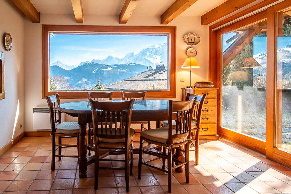 Situated in a quiet area near the village of Combloux, this chalet enjoys an exceptional setting with panoramic views of the Mont Blanc range.