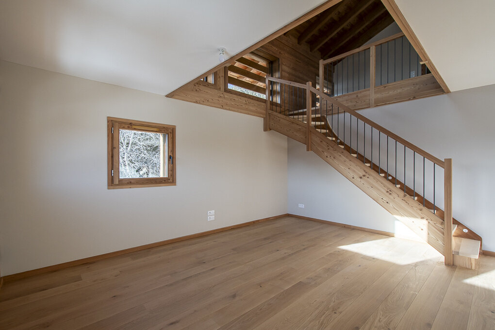 Located within an intimate residence of just five units, the apartment features a bright living area with an open-plan kitchen opening onto a balcony, two bedrooms including one with en-suite bathroom, as well as a laundry room / ski room. Upstairs, an additional en-suite bedroom and an open mezzanine complete the property. The finishes are of high quality, with materials in harmony with traditional Haute-Savoie style: oak parquet flooring, underfloor heating, and refined finishes throughout.
