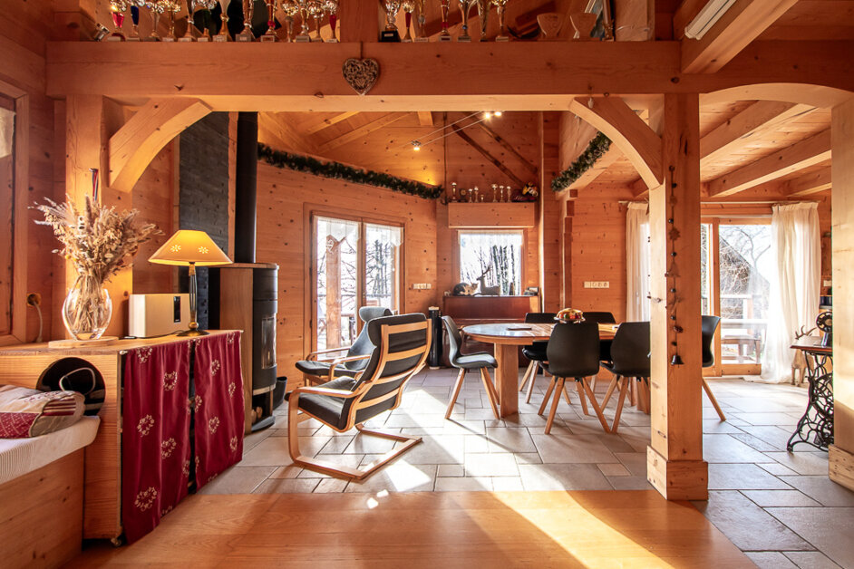 Combining traditional Alpine architecture, spacious accommodation and modern comforts, this chalet boasts top-quality features and a warm interior filled with natural light. It comprises a living room with a wood-burning stove opening onto a south-facing terrace. Open-plan equipped kitchen with pantry. The sleeping area includes 4 bedrooms, 2 with en-suite shower rooms. Large mezzanine that could be used as a study, a games room, or a library, etc.