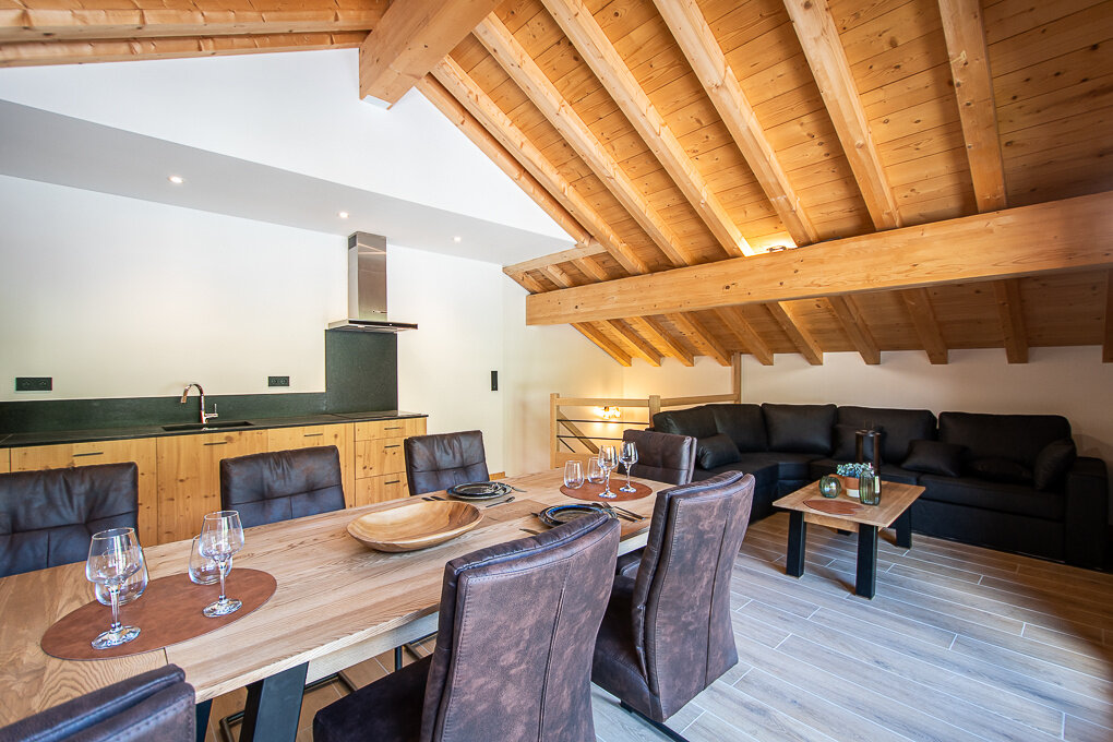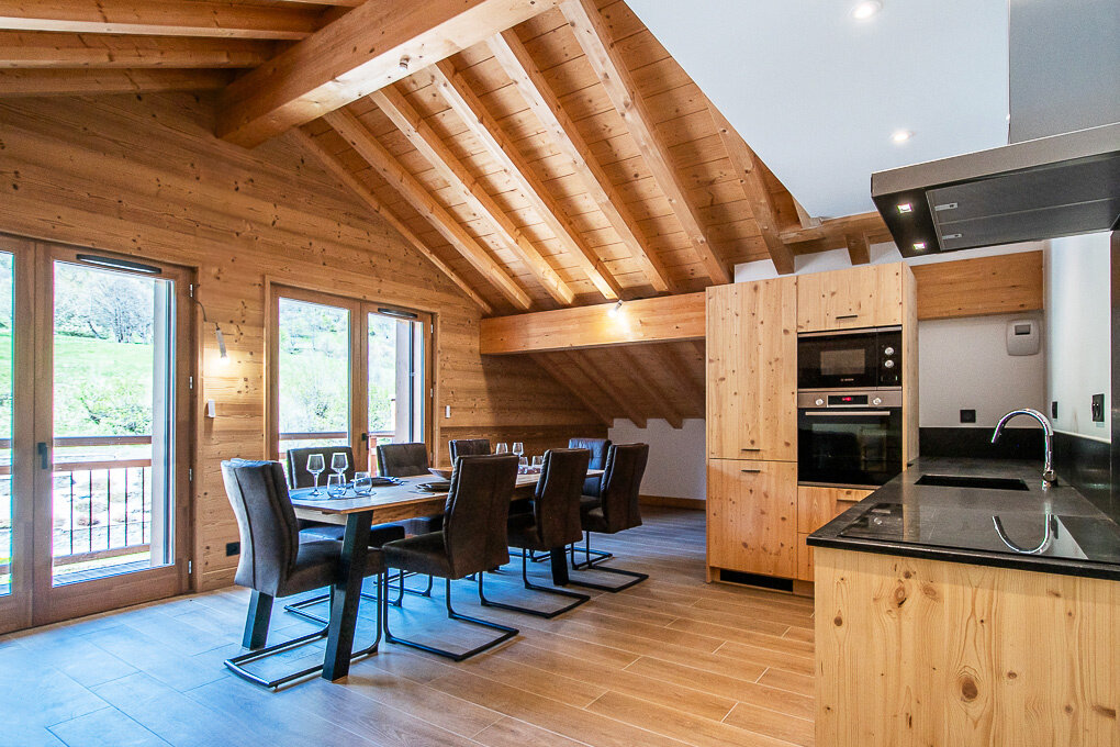 A ski locker, a cellar and a covered parking space complete this high-quality property.