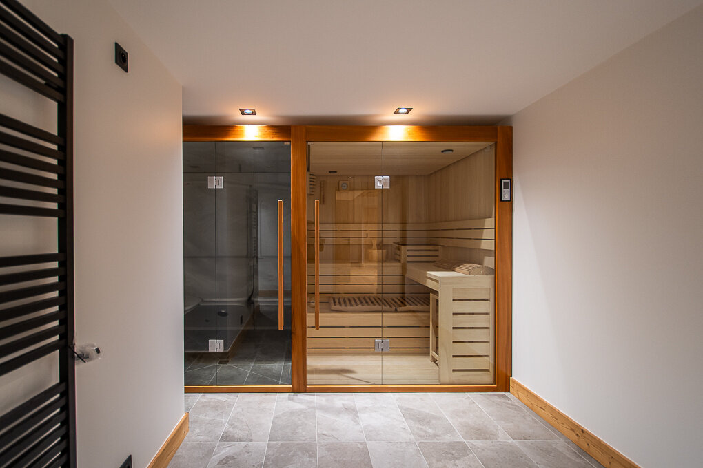 It comprises a large living room with a lounge, a dining room and an open-plan kitchen with a balcony. On the lower ground floor, 3 bedrooms with built-in dressing rooms, bathroom and shower room. Wellness area with shower room and toilet. Games room and cinema.