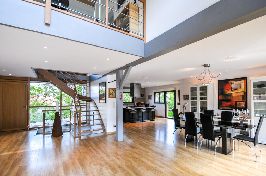 Rare environment and quality. Luminous property with beautiful volumes of about 329 sqm. Ground closed and trees about 1039 sqm. Big stay cathedral and living room with access terrace. Fully equipped open kitchen. 4 bedrooms including a master suite. Office. Large basement. Swimming pool and jacuzzi. Double garage. Parking. No vis-à-vis. DPE: C