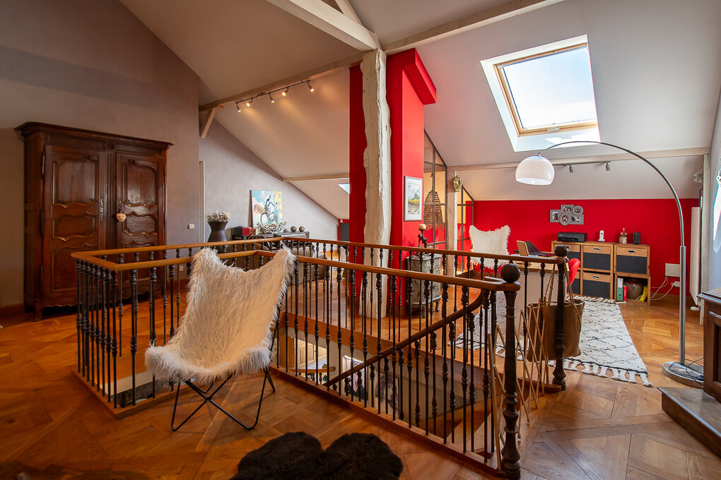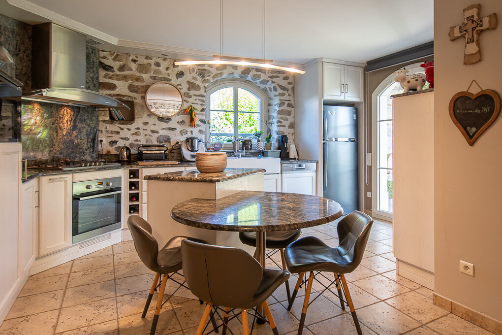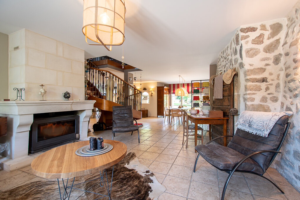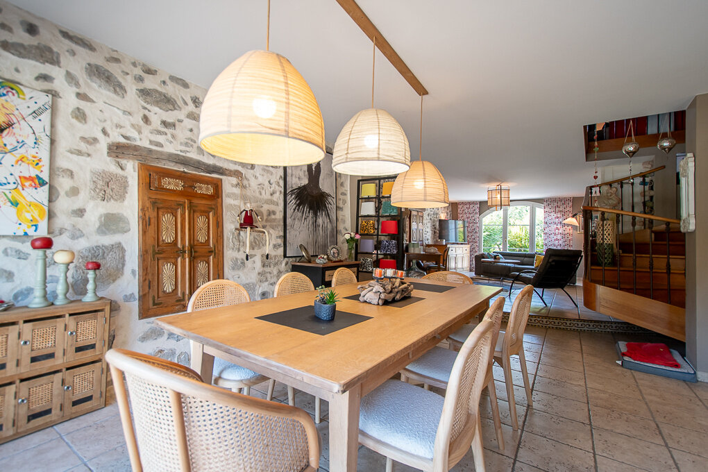 With a living area of approximately 214 sqm, this charming residence offers beautiful volumes and modern amenities. The ground floor opens onto a spacious living area comprising an equipped kitchen, a dining room and a lounge with a fireplace and access to the terrace. A bedroom, a separate shower room and a laundry room complete this level. Upstairs, two large bedrooms, a family bathroom and a large open space under the roof beams offer various possibilities for conversion (living room, office, library, etc.). Cellar and garage.