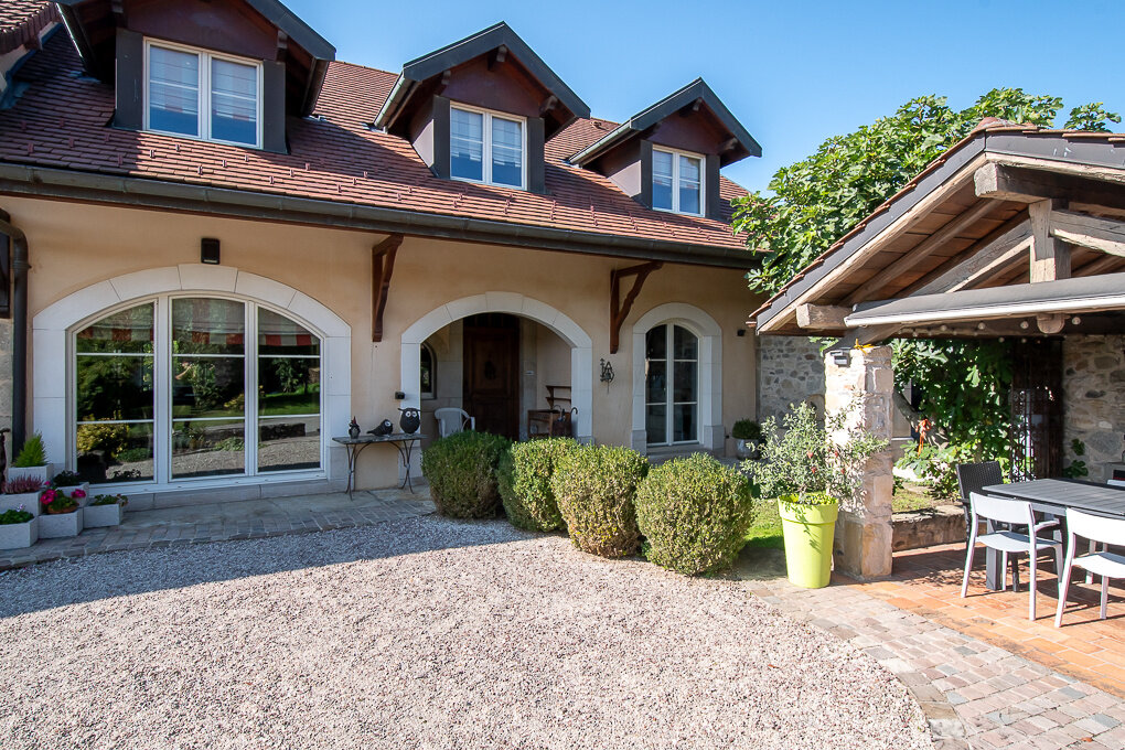 On the Annecy-Geneva axis, in the heart of the peaceful village of Cernex, a former 19th-century farmhouse carefully renovated with exposed stonework and beams, a wooded garden and a period bread oven.