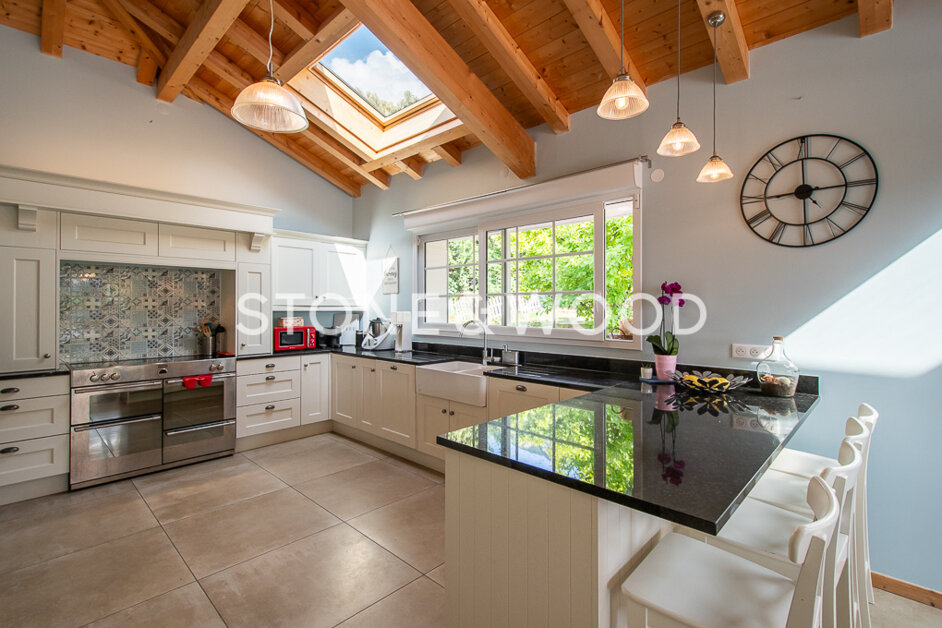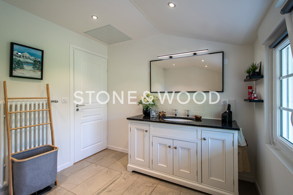 Composed of a large kitchen with dining-room and a living room with fireplace, both rooms with accesses to the outside. 4 bedrooms including a master suite with bathroom and balcony. Independent apartment composed of a kitchen, a dining-room, a living room, 2 bedrooms and a bathroom. Numerous storage. Laundry.