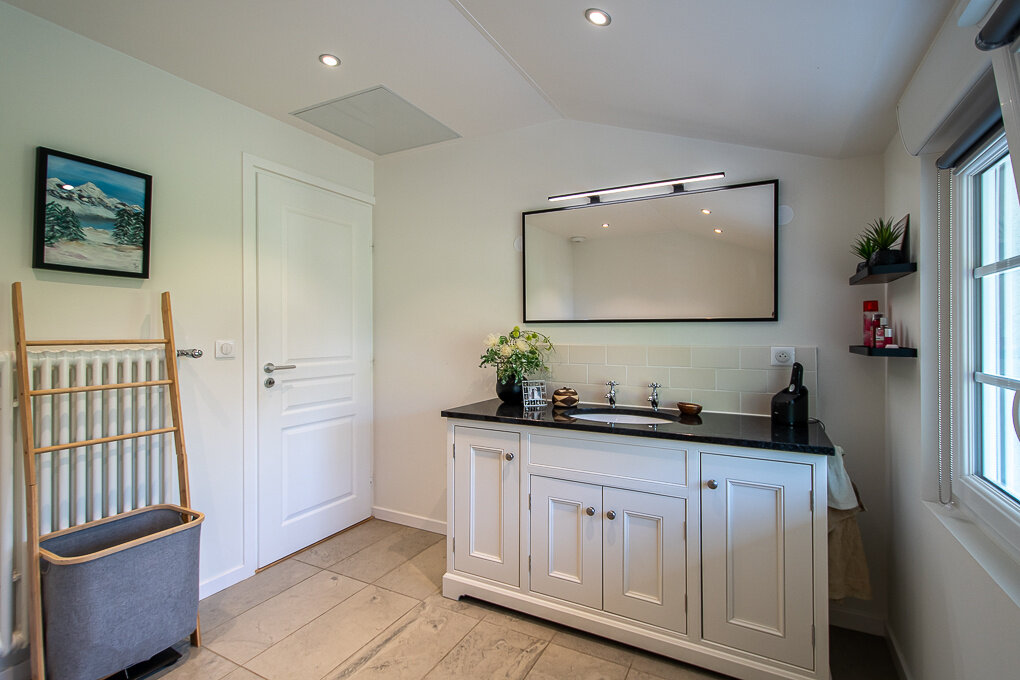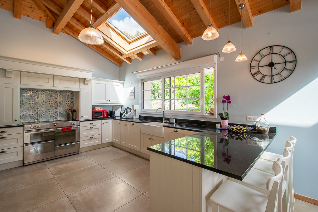Composed of a large kitchen with dining-room and a living room with fireplace, both rooms with accesses to the outside. 4 bedrooms including a master suite with bathroom and balcony. Independent apartment composed of a kitchen, a dining-room, a living room, 2 bedrooms and a bathroom. Numerous storage. Laundry.