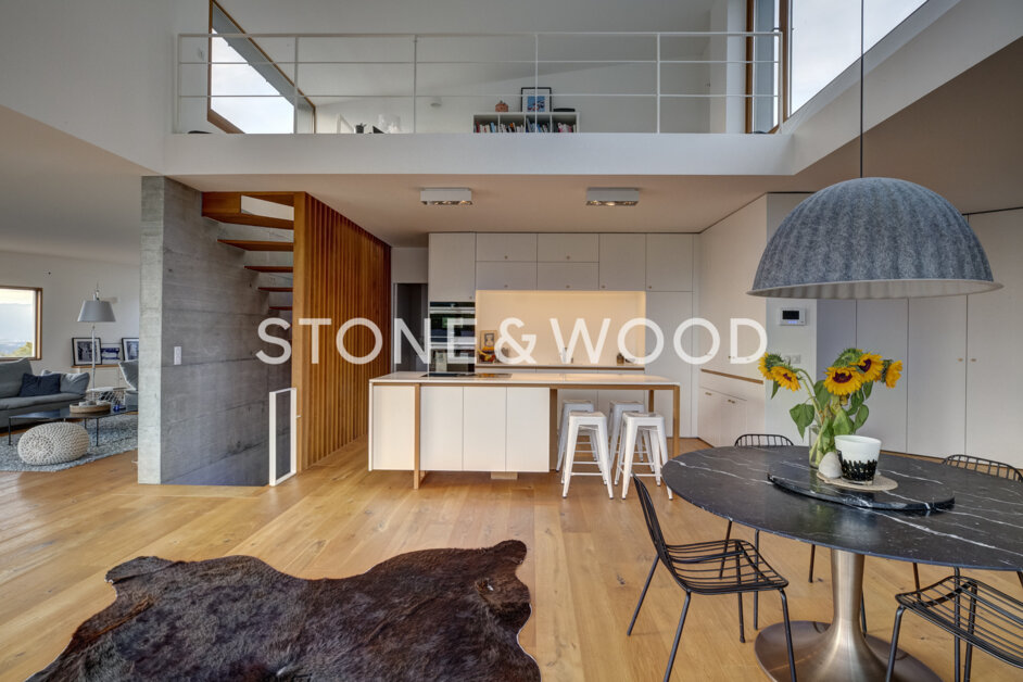 This contemporary architect-designed property with top-of-the-range features offers 245 sqm of living space (280 sqm of usable area).