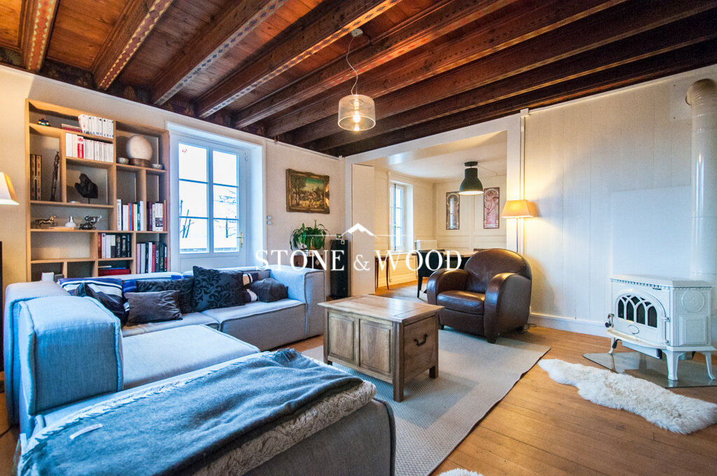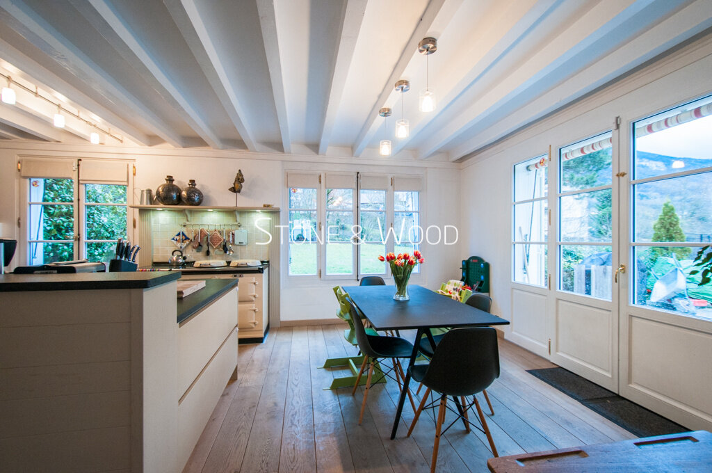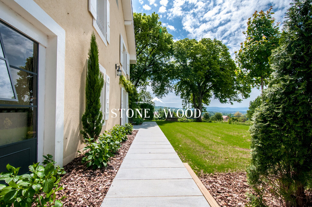 Property from 1850 renovated and restored in keeping with its history. Charm and harmony for this property of 220 sql built on a beautiful wooded and fenced park of about 2,350 sqm building. Kitchen open to dining-room. Double living room with fireplace and library. Desk. Laundry. Wine cellar. TV lounge. View over Geneva and the Jura. Possibility to detach land to build a 2nd property. DPE: E