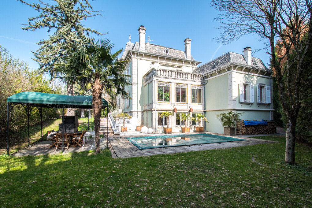 Magnificent and authentic mansion about 330 sqm on a plot closed and trees by 1'352 sqm with a swimming pool. Equipped kitchen with dining area. Large living room with double fireplace and veranda. 6 rooms of which a master bedrooms with bathroom, dressing and a terrace. Laundry room. 4 garages and a shelter for 2 cars. Parkings. An independent apartments about 70 sqm complete this property. In immediate proximity and with feet of transport, shops and schools. Possibility to buy a second independent flat about 70 sqm. DPE: D