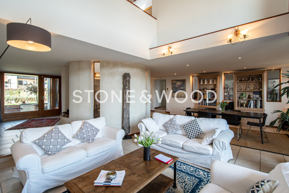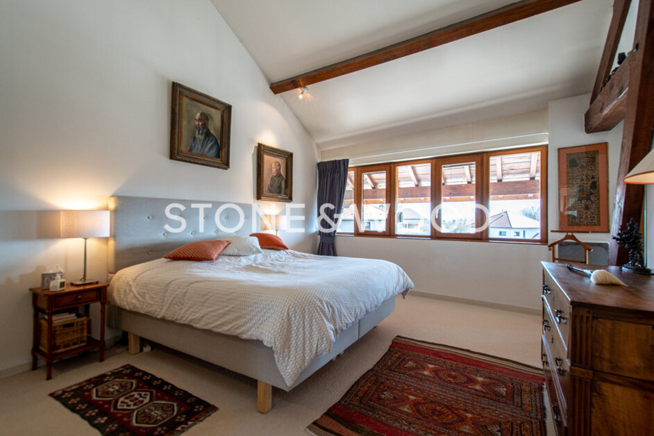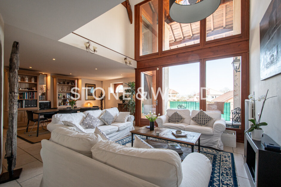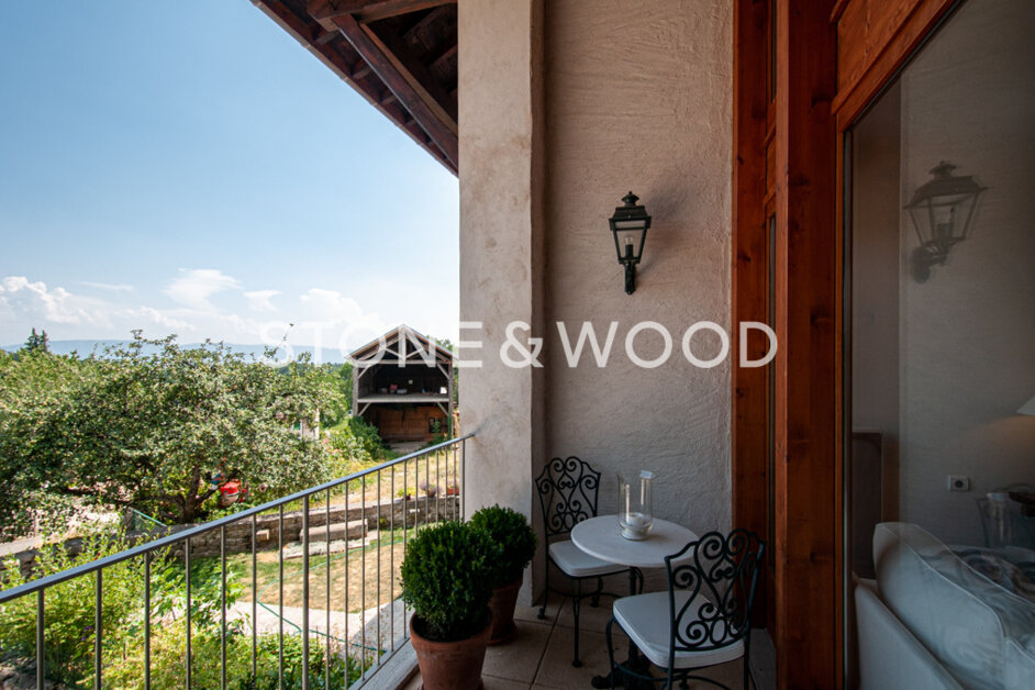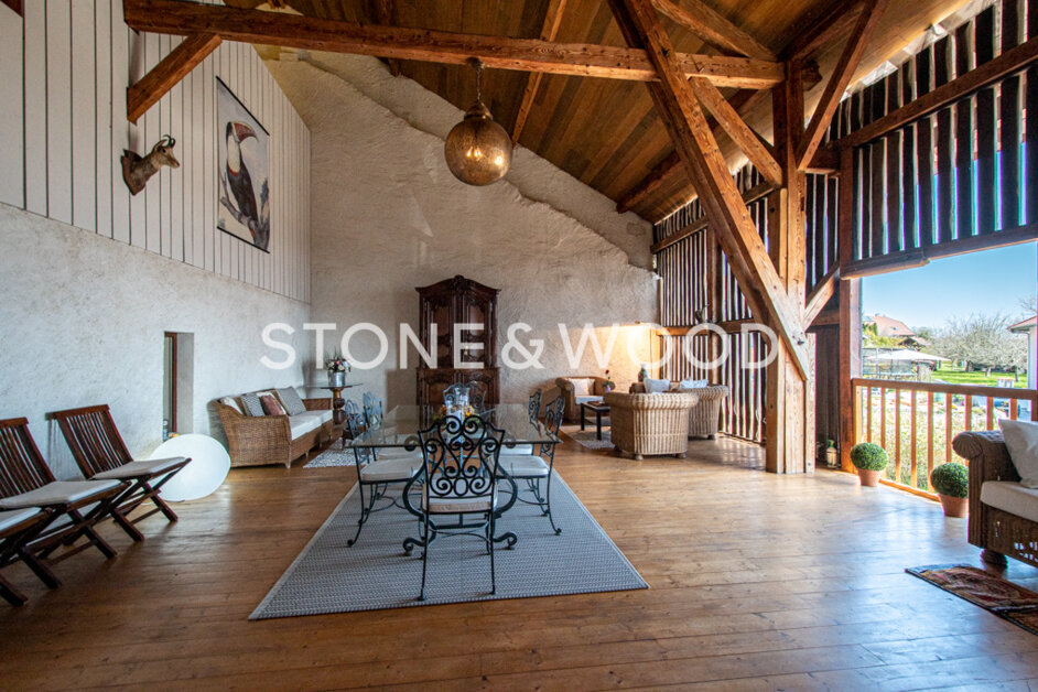 Charm, space and brightness for this old farm which has been renovated with high quality materials. Living space about 250 sqm with a wooded and fenced plot. Large living room with terraces on both sides and a winter garden/summer lounge of 62 sqm. Terraces. Triple garage of 70 sqm. Stunning view on the Mont-Blanc and Lake Geneva. Possibility to create a separate apartment. 20 minutes from Geneva Airport. Close to all commodities, including world class golf course, regional nature park and ski lifts. Files on request. DPE : NC