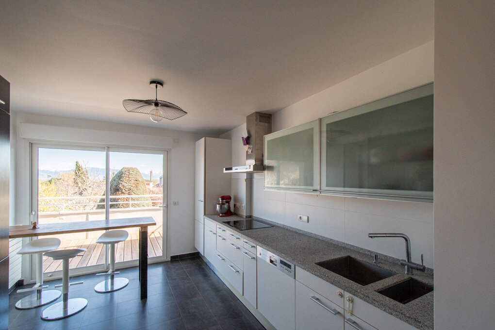 Just 5 minutes from the center of Divonne-les-Bains, this flat of 146.10 sqm (Carrez law), located in a modern, small-scale residence, offers a comfortable and functional living environment on the doorstep of Switzerland.
