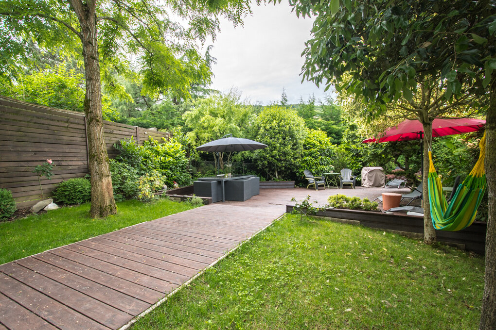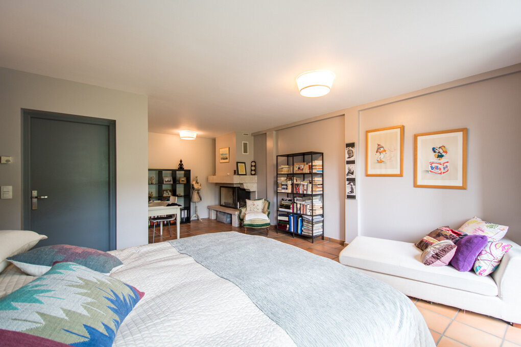 Beautiful enclosed garden with terrace, jacuzzi and courtyard. A large kitchen and a second smaller, 2 living rooms and 1 lounge, 5 bedrooms, one master-suite and one with balcony. Large cathedral living room under the eaves. Sports hall. Sauna. Laundry. Wine cellar. Garage.