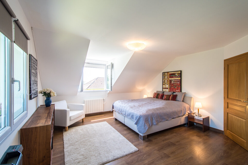 Large bright living room with a kitchen open to dining-room and lounge with fireplace and several terrace access. 4 bedrooms including 2 with a private bathroom and one with a dressing. Office. Large TV lounge on the first floor. Numerous storage. Double garage. Garden shed.