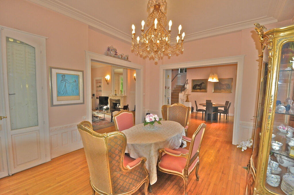 Magnificent 280 m2 property with charm and character located in the city center. 2,480 m2 park. Swimming pool 6 x 12. Without vis-à-vis. Two living rooms with dining room + fireplace. Independent fitted kitchen with exit to terrace. 5 bedrooms including master bedroom with bathroom, shower and wc. Balconies. Basement. Double garage. Close to all amenities. Exceptional and rare in the area.