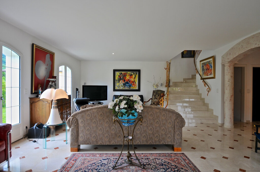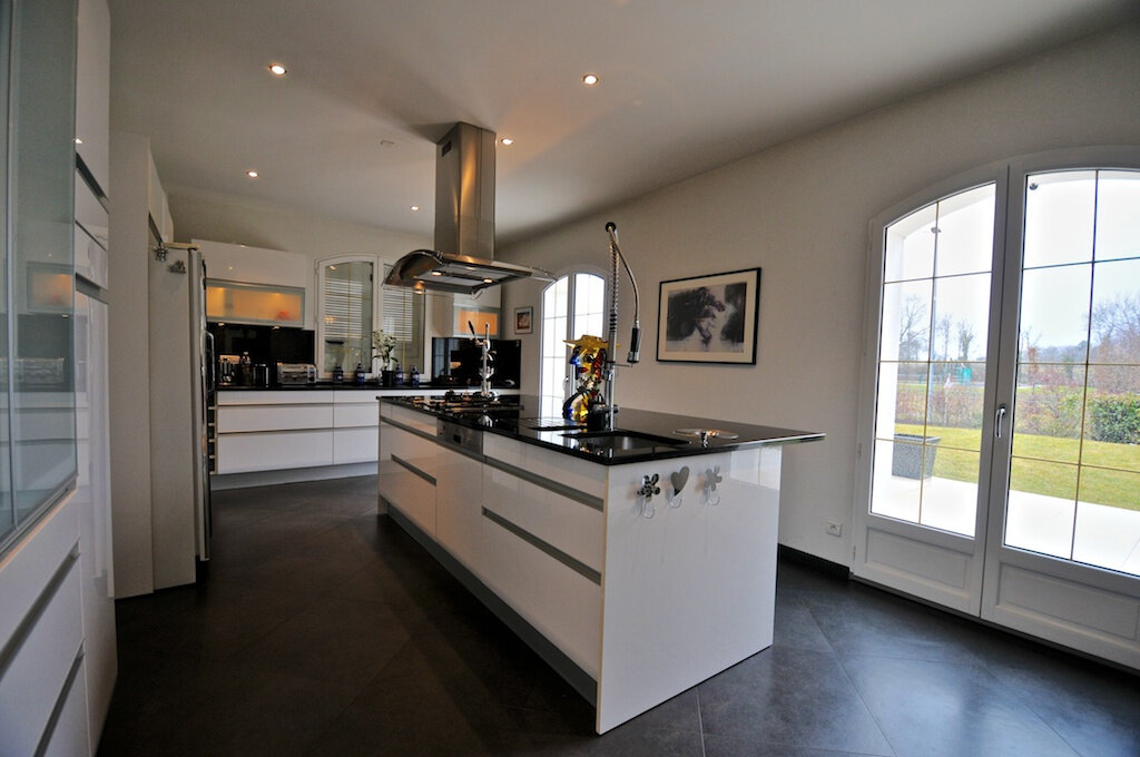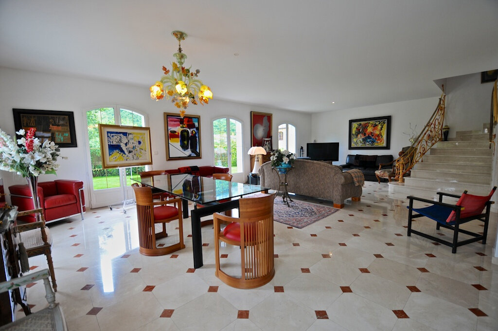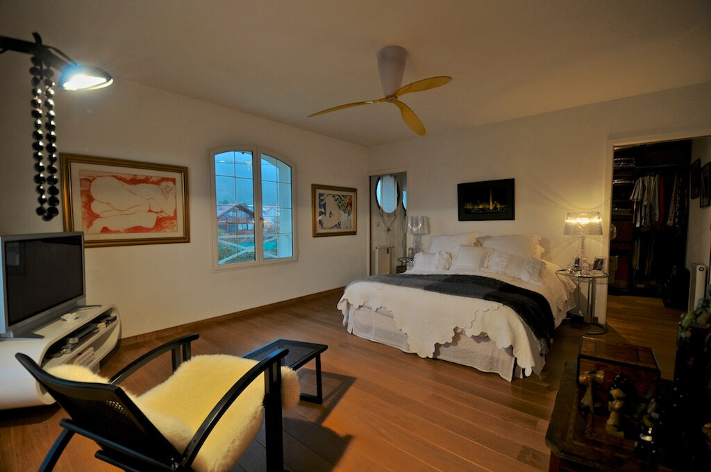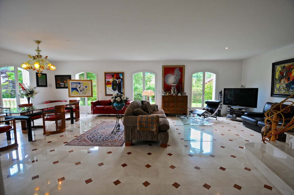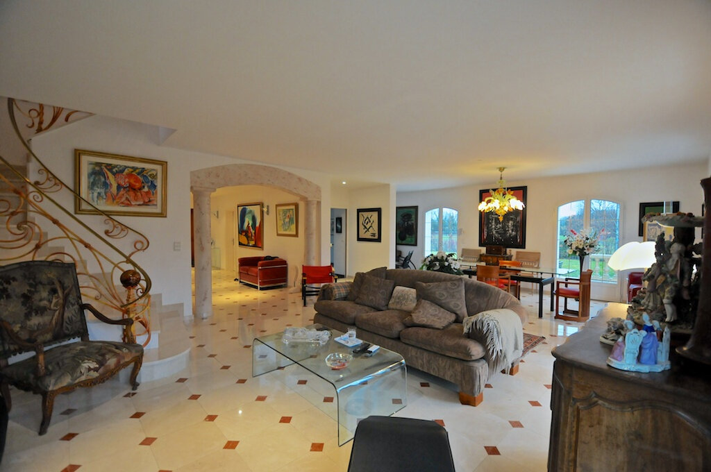 Sublime colonial property of 316.67 sqm + garage 80 sqm located on a beautiful plot of 1'053 m2 wooded and closed by a fence wrought of iron art. The high quality materials and very bright spaces will seduce you. Equipped kitchen, dining-room and large living room overlooking the terrace. 4 bedrooms including a large master suite with dressing room and bathroom. Large full basement. Possibility of an independent apartment. View Mont Blanc. quiet residential setting. Golf White House 1 km, Geneva airport 15 minutes Shopping center 5 km. DPE: B