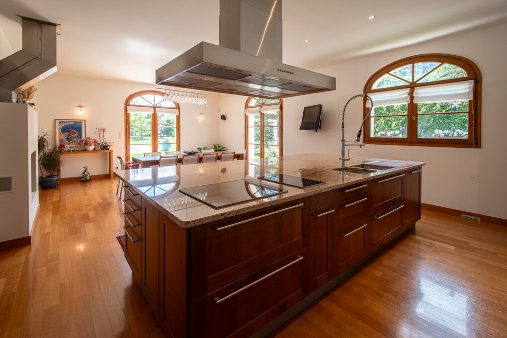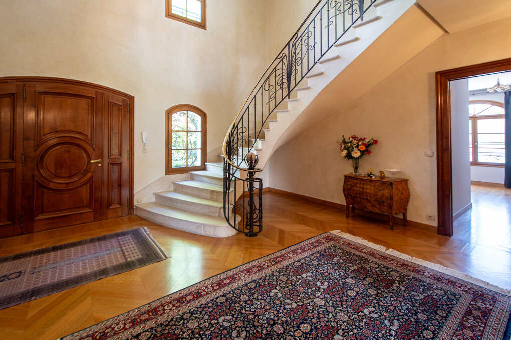 The fully fitted basement offers space for staff or can be converted into an independent living area. It includes a wine cellar, a fitness room, 3 large garages.