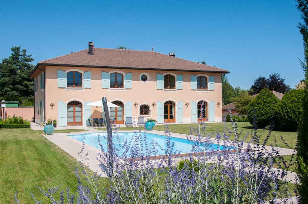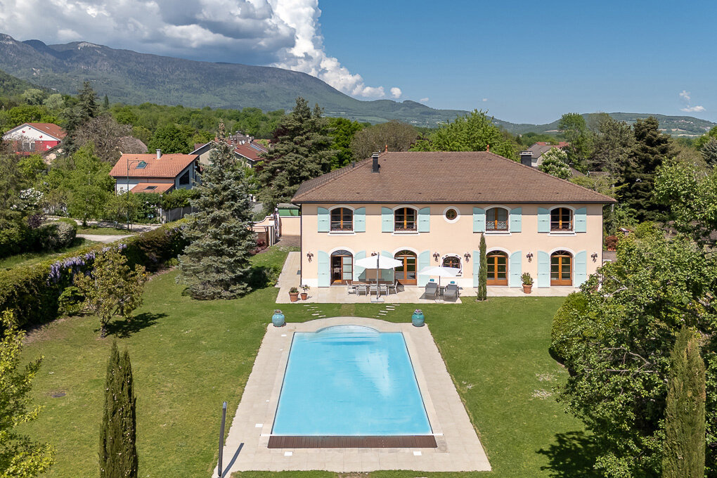 Nestled in the heart of the Pays de Gex, this exceptional 605 sqm mansion is set on a peaceful, lush 3,000 sqm plot.