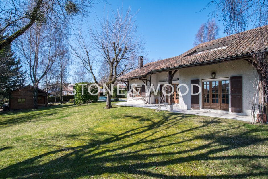 Close to the center of Prévessin-Moëns, beautiful property of 232 sqm set on 1681 sqm enclosed and green plot with swimming pool and pool house. Spacious living-room with a lounge, a fireplace and several terrace accesses. Independent equipped kitchen. Veranda overlooking the pool. 5 bedrooms, one with terrace access.