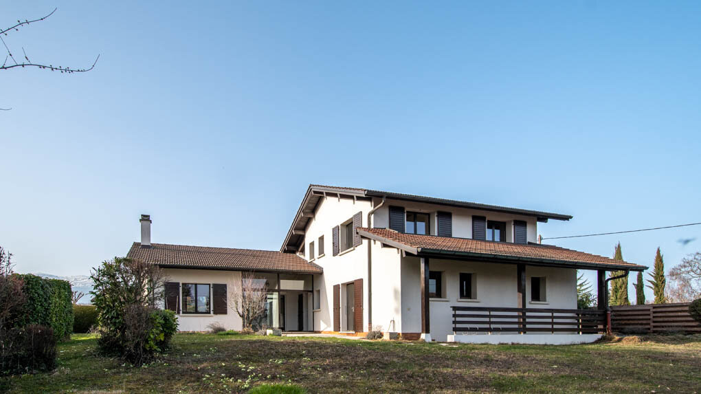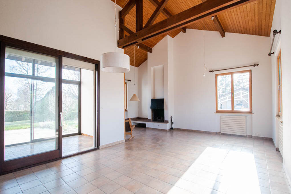 Closed to the center of Prévessin-Moëns and Ferney-Voltaire. In a calm and green environment, property of 215 sqm established on a flat, fenced and building plot of approximately 1700 sqm. 'Cathedral' living room with fireplace and access to the veranda, terrace and garden.