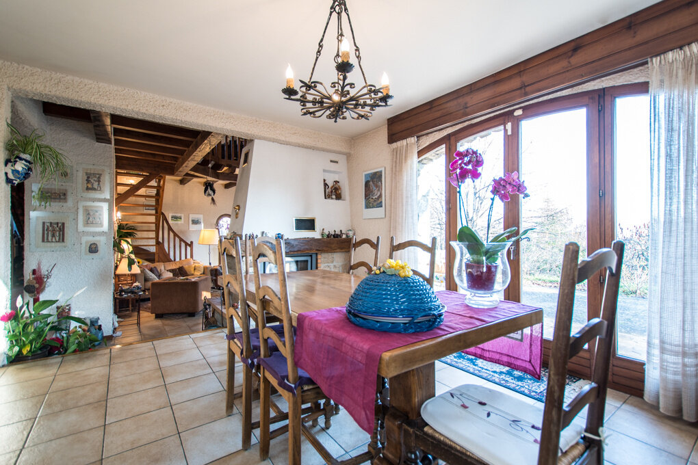 Beautiful residential house of about 150 sqm. Established on a plot of 1,675 sqm. Independent equipped kitchen with pantry, dining room and cathedral living room with fireplace and access to terrace. 2 rooms including a big parental suite with dressing and bathroom. Possibility of a 3rd bedroom. Large basement complete. Double garage. Quiet and residential area. Unobstructed view of Mont Blanc. DPE : NC