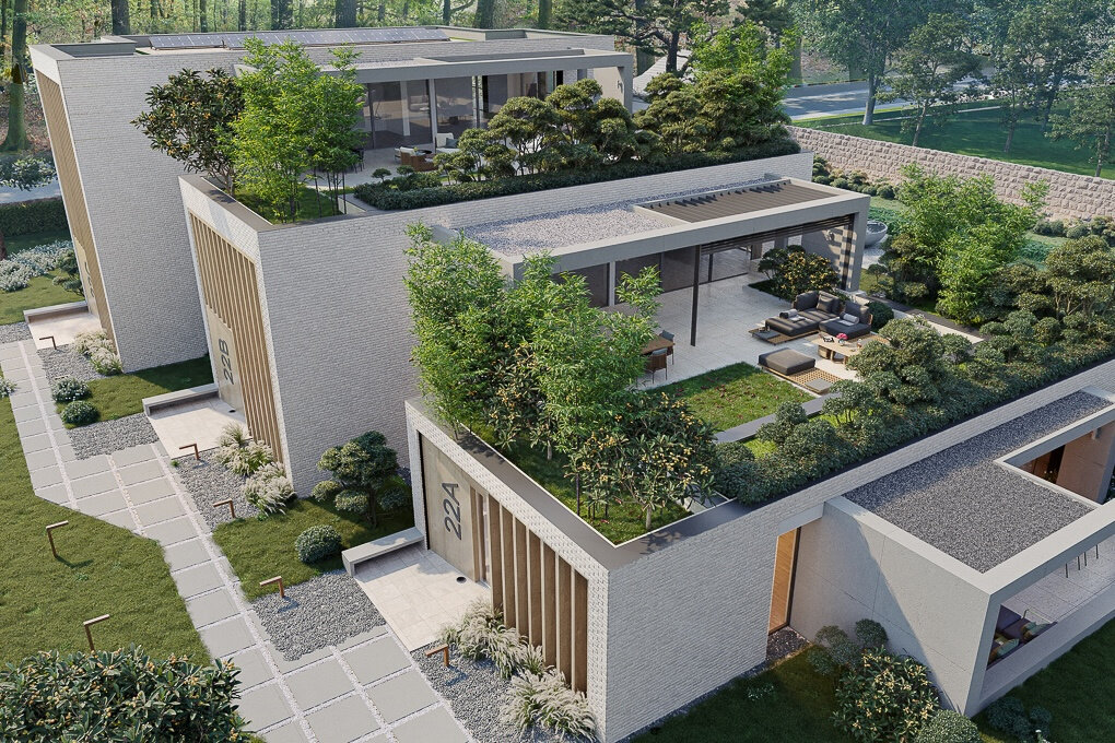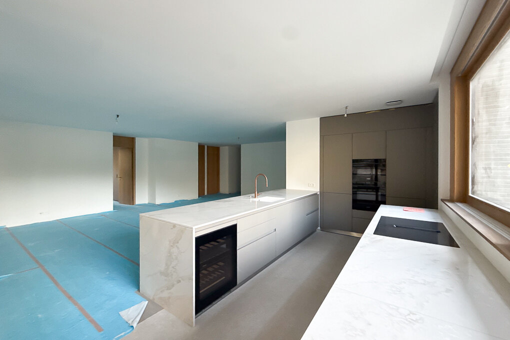 The bright interior spaces feature high-end finishes: BULTHAUP kitchen, RIMADESIO fittings, noble materials, natural wood, and stone flooring. The 44 sqm living room opens directly onto the terrace, a true extension of nature, while two bedrooms and a master suite with walk-in closet ensure comfort and privacy.