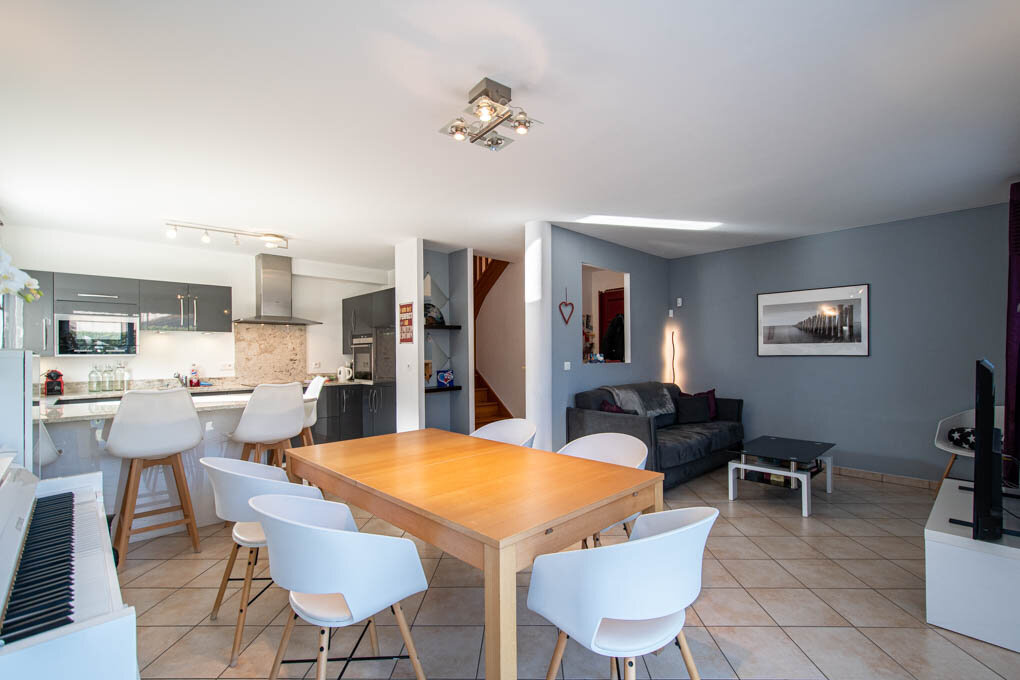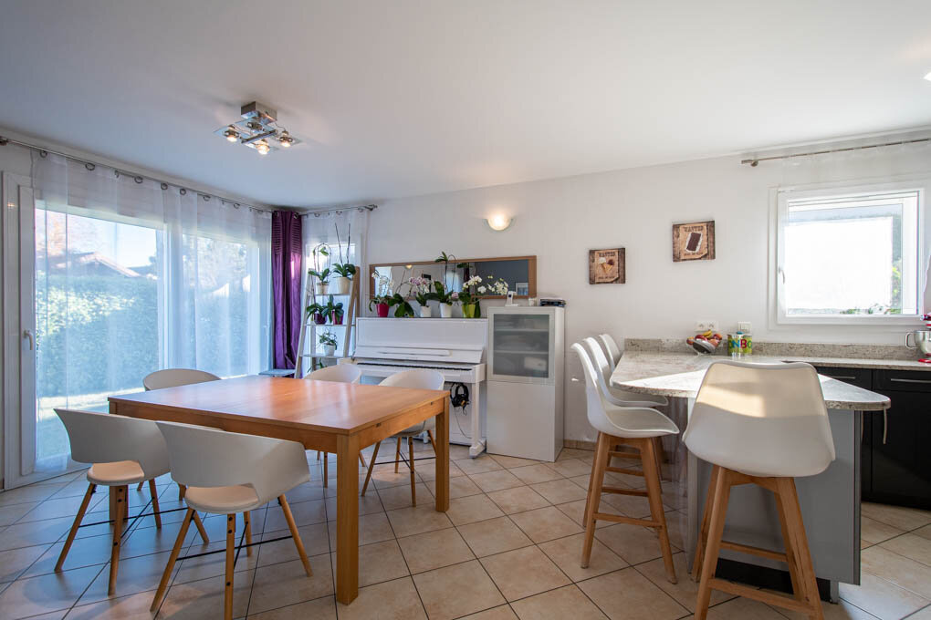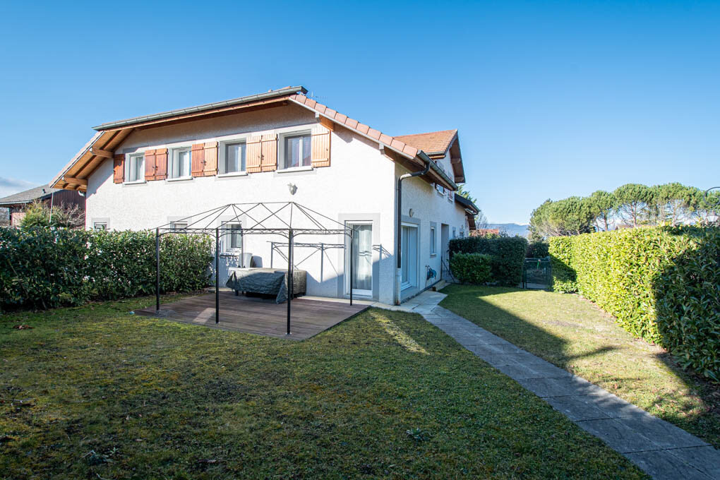 Dans un quartier résidentiel au calme à proximité des commerces, écoles, Genève et son aéroport. A 3 minutes de l'axe autoroutier. Maison contiguë construite en 2005 d’une surface d'environ 152 m2 utiles sur 3 niveaux. Le rez-de-chaussée se compose d'une cuisine équipée ouverte sur le salon et la salle à manger offrant plusieurs accès au jardin privatif d'environ 160 m2. A l'étage, 3 chambres dont deux avec dressing intégré. Salle-de-bains + espace buanderie. Sous les combles, espace aménagé en salon TV. Bureau. Grand garage double en enfilade avec espace de stockage et arrivées d'eau pour une buanderie. Parking de copropriété. DPE : D Le bien est soumis au statut de la copropriété (16 lots) - Procédure en cours. Honoraires TTC à la charge du vendeur.