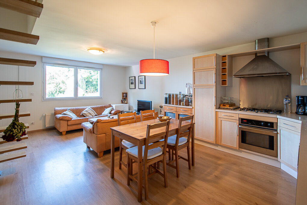 La maison se compose au rez d'une spacieuse pièce de vie avec cuisine équipée ouverte, salon/séjour avec cheminée. A l'étage, 3 chambres dont une avec pièce supplémentaire pouvant faire office de bureau. Salle-de-bains.