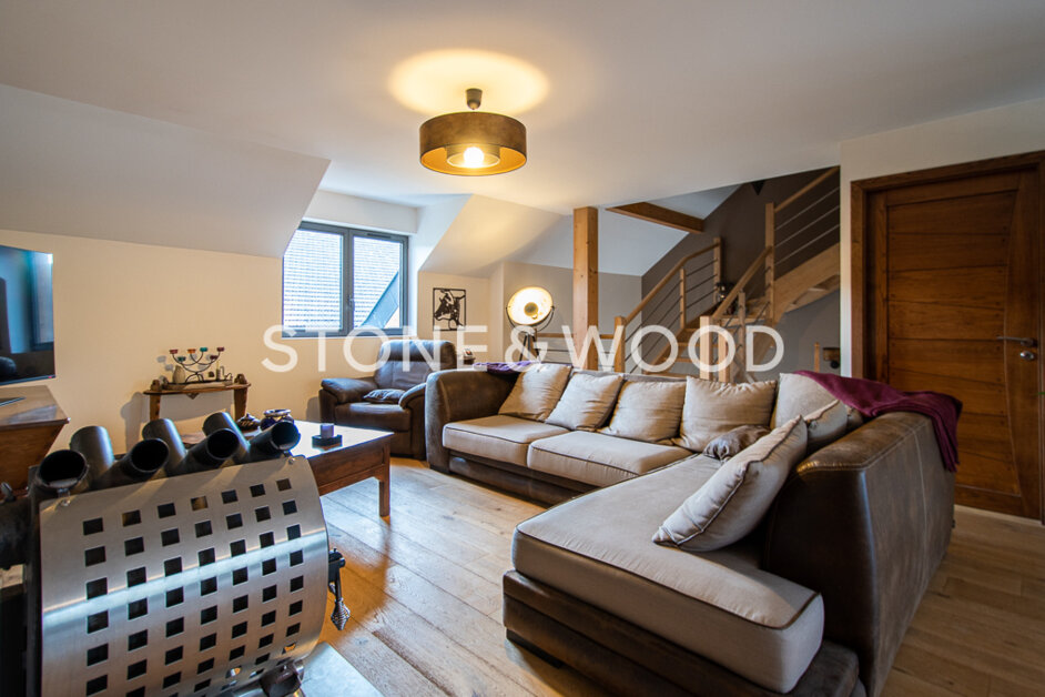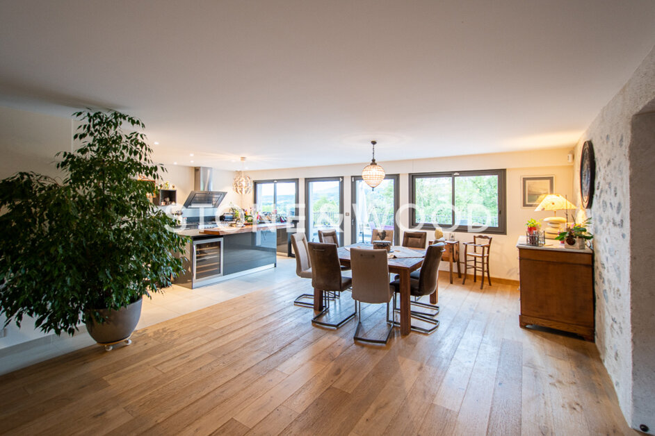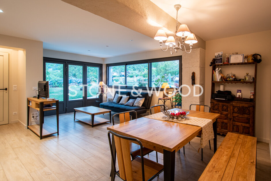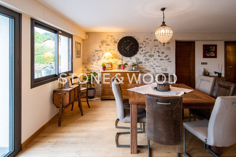 Dans un cadre calme et champêtre sur l’axe Annecy-Genève, ancien corps de ferme mitoyen du 19e siècle rénové avec des prestations de qualité.