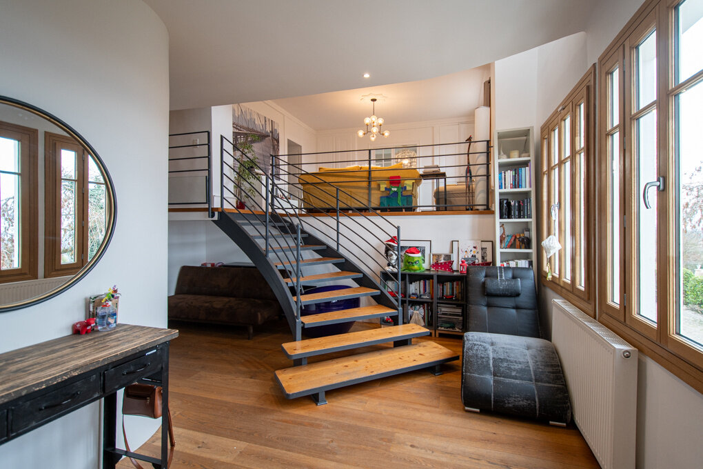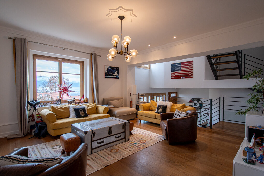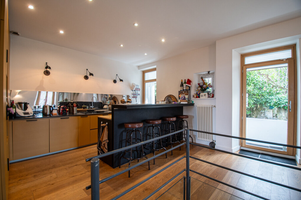 Au cœur d’une bâtisse de 1900 chargée d’histoire, ancien « Hôtel des Alpes » entièrement réaménagé en logements, ce vaste appartement de 6 pièces d’environ 204 m2 habitables se vit comme une maison, avec son organisation en 5 demi-niveaux et son jardin privatif d’environ 1 033 m2. Les pièces de vie lumineuses, le double salon, la cuisine équipée ouverte sur la salle à manger et l’accès direct au jardin offrent un cadre de vie chaleureux et convivial pour une famille.