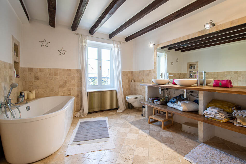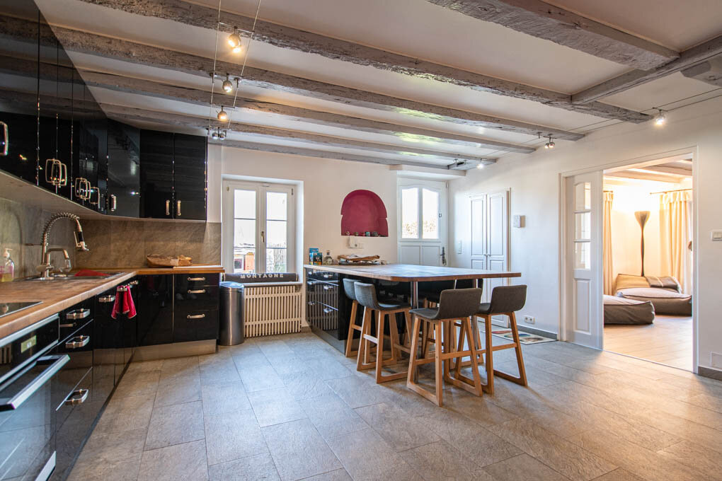 Charme et histoire pour cette maison de village située à Collonges-sous-Salève, à quelques minutes de la douane de la Croix de Rozon. Cette ancienne auberge rénovée avec goût il y a 10 ans offre une surface d'environ 360 m2 habitables. Sise sur un terrain de 538 m2 dont un jardin arboré de 270 m2, les prestations sont de très belles qualités et aucun travaux n'est à prévoir. Un cachet tout particulier se dégage de chaque pièce, dont les couleurs douces et la décoration moderne s'allient avec le charme des poutres apparentes et des parquets en bois. Au rez-de-chaussée, la propriété se compose d'un salon et d'une salle-à-manger avec cheminée traversante et accès terrasse, d'une grande cuisine équipée avec coin repas et cellier. Chambre avec sa salle d'eau. Au 1er étage, 4 chambres dont une avec sa salle d'eau en-suite. 2ème salle-de-bains indépendante et dressing. Au dernier étage, spacieuse suite parentale avec salon, salle-de-bains et dressing ainsi qu'un accès vers les combles composés d'une mezzanine. Sous-sol complet avec grand garage, cave à vin et 2 pièces spacieuses. Un appartement T2 indépendant vient compléter le bien. Places de parking derrière la propriété. DPE : D A proximité des commodités et des établissements scolaires. Honoraires TTC à la charge du vendeur.