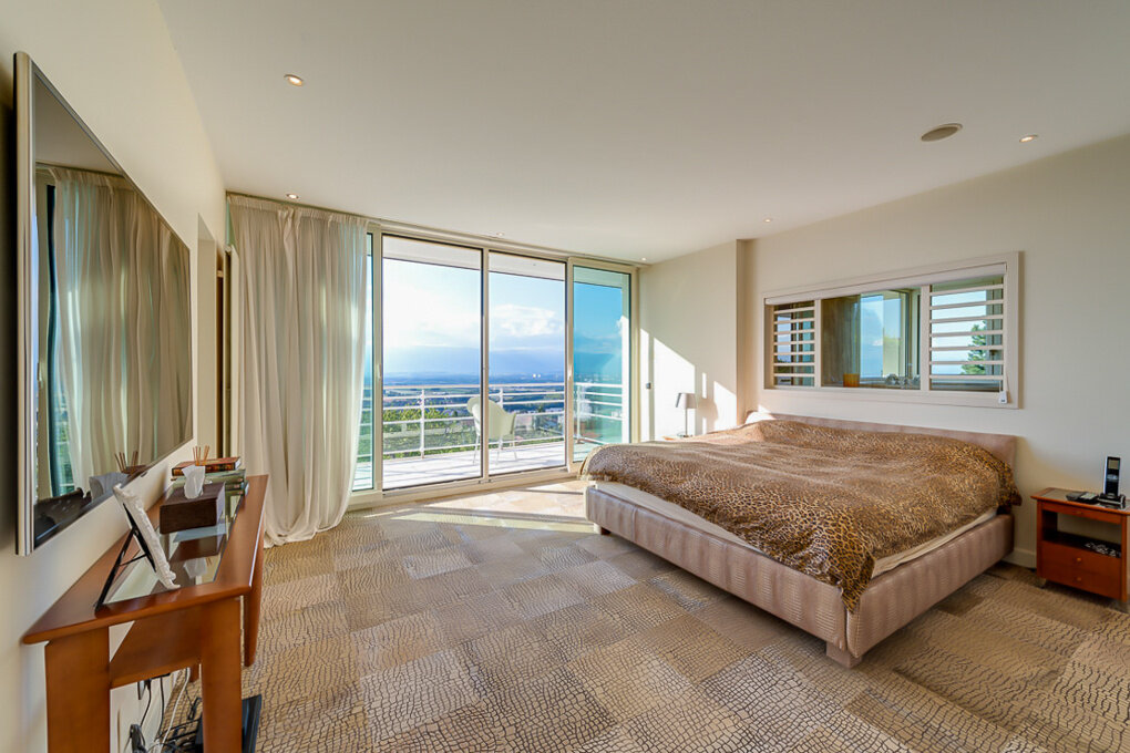 À seulement 5 minutes de la frontière Suisse et à 15 minutes de l'aéroport international de Genève. Spacieuse propriété contemporaine de 550 m2 habitables édifiée sur un terrain arboré d'env 4.500 m2 avec vue dégagée sur le Lac Léman, le Jura et Genève. L'intérieur offre de beaux volumes et de grandes ouvertures sur l'extérieur. Vaste pièce de vie, 5 chambres, 5 salles-de-bains, salle de sport, jacuzzi, carnotzet. DPE : C
