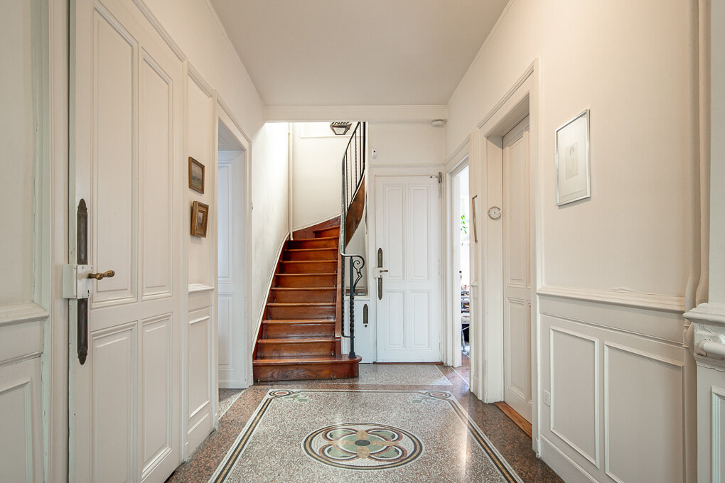 D'une surface d'env. 290 m2 utiles (207 m2 hab.), la propriété comprend 10 pièces réparties sur 3 niveaux. Elle s'ouvre sur un magnifique hall d’entrée avec un sol en granito mosaïques d'où l'on accède à un lumineux séjour avec cheminée, à une cuisine indépendante ainsi qu'à un bureau ouvert sur une pièce dédiée au piano. Cet espace de vie dispose également d'un accès à une spacieuse terrasse idéalement exposée et sans vis-à-vis.
