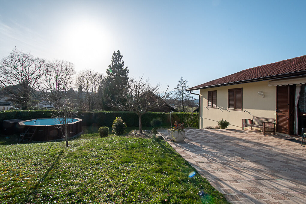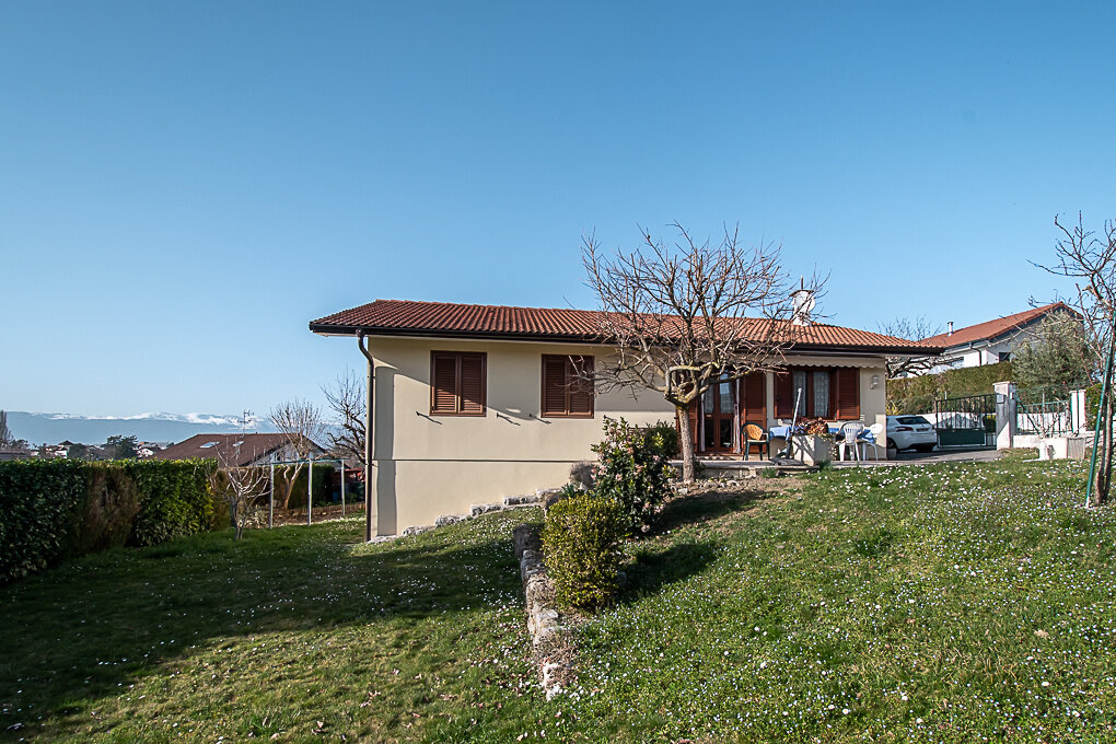 Cette charmante maison de plain-pied bénéficie d’un environnement résidentiel calme et verdoyant, à proximité de la frontière suisse et de Genève.