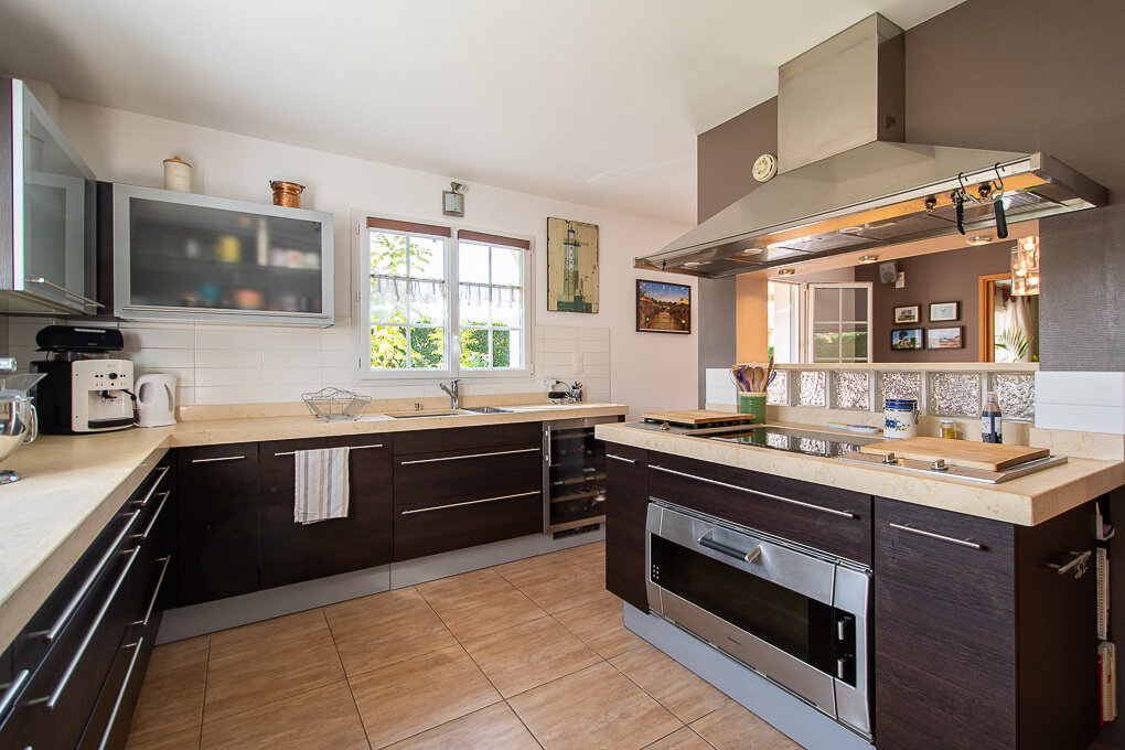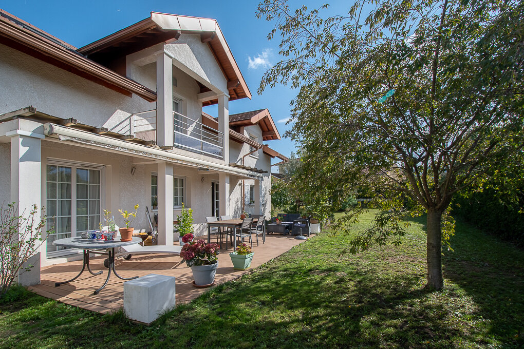 Dans un cadre résidentiel et calme à Valleiry, commune frontalière située à 15 min des douanes de Perly et Chancy et à 30 min de Genève. Cette charmante propriété saura parfaitement répondre aux exigences d'une famille tant par sa proximité avec toutes les commodités (commerces, écoles, bus scolaire, activités, accès rapide au P+R, etc.) que sur l'aménagement des pièces qu'elle dispose. Construite en 2009, la maison est lumineuse et offre une surface d'env. 274 m2 utiles (213 m2 habitables) sur 3 niveaux. Parcelle close et arborée de 987 m2 piscinable. L'intérieur se compose d'une grande pièce de vie avec cuisine entièrement équipée avec cellier, salle à manger et salon TV avec cheminée à gaz. Plusieurs accès terrasse. 5 chambres dont une au rez-de-chaussée ainsi qu'une suite parentale à l'étage avec poêle à bois, dressing, salle-de-bains, sauna et balcon. 2 salles-de-bains complètes. Rez inférieur avec atelier, garage et buanderie. Nombreuses places de parking extérieures. DPE : C Honoraires TTC à la charge du vendeur