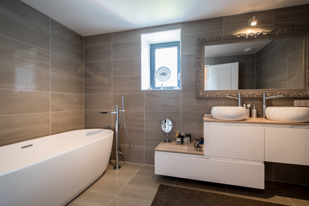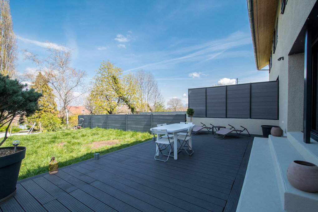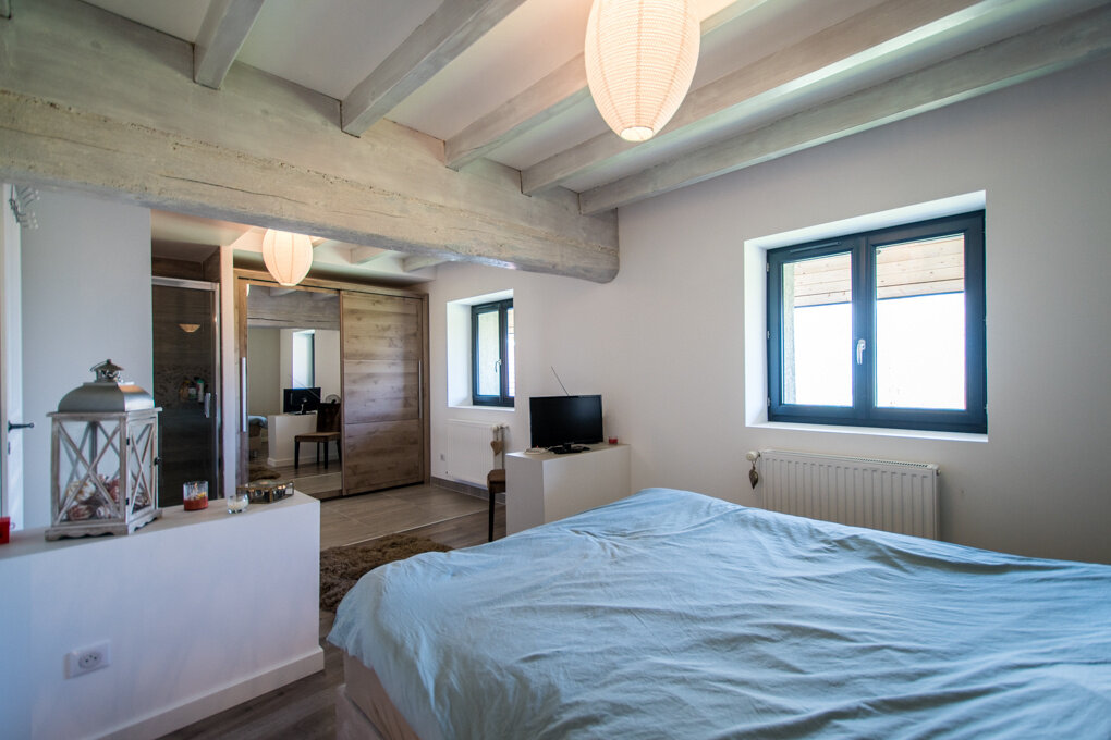 Dans une ancienne ferme entièrement rénovée, charmante maison mitoyenne de 175 m2 utiles disposant d'environ 400 m2 de terrain. Lumineuse pièce à vivre composée d'une cuisine équipée, d'une salle-à-manger et d'un salon avec cheminée et accès terrasse. À l'étage, 3 grandes chambres dont une suite parentale avec salle-de-bains et dressing. Combles aménagées (possibilité de créer 2 chambres). Buanderie. Grenier. Abri voiture et place de parking. Située dans un environnement calme et verdoyant à 5 minutes de toutes commodités. DPE : B