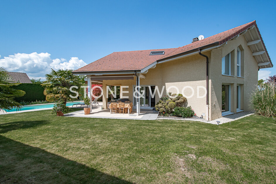 Dans un quartier résidentiel à Viry, commune frontalière à 15 min des douanes de Perly et Soral et à 25 min de Genève. Cette propriété familiale profite d'un cadre calme et verdoyant tout en étant située à proximité de toutes les commodités (commerces, écoles, bus scolaire, accès TPG, etc). Entièrement rénovée en 2009, la maison est lumineuse et offre une surface d'env. 149,48 m2 habitables et 236 m2 utiles répartis sur 3 niveaux. Parcelle close et arborée de 930 m2 avec piscine. L'intérieur se compose d'une spacieuse pièce de vie avec plusieurs accès sur la terrasse et comprend une cuisine entièrement équipée avec cellier, un salon TV, à hauteur cathédrale avec cheminée, ouvert sur la salle à manger. 4 chambres dont 3 avec dressing intégré. 2 salles d'eau. Mezzanine avec espace pour un coin bureau. Grand sous-sol aménagé avec vide sanitaire. Garage double et places de parking. DPE: C