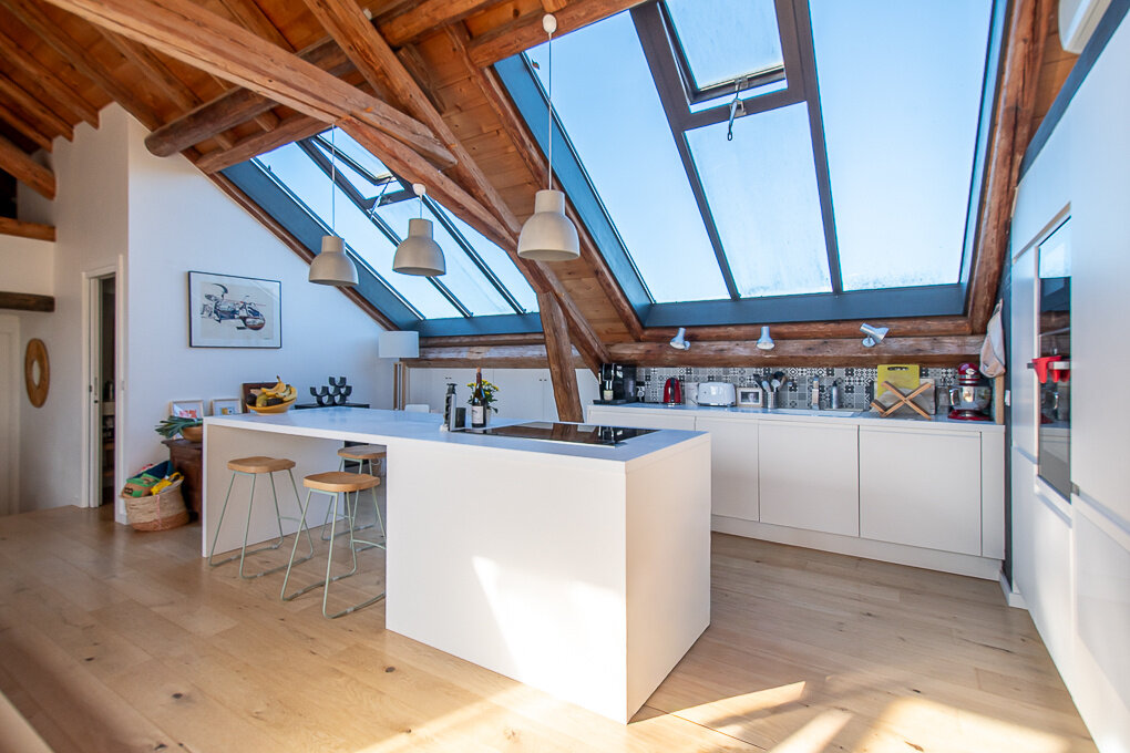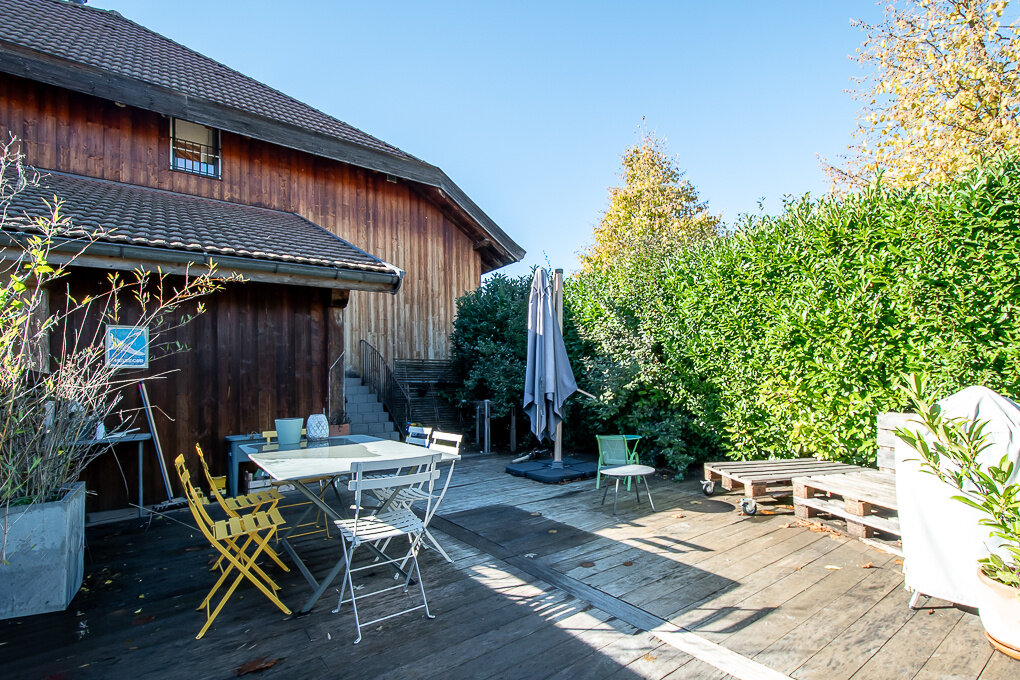 Dans un environnement résidentiel, calme et familial, à seulement dix minutes du centre d’Annecy et du lac, splendide appartement de charme d'une surface de 169 m2 utiles (116 m2 Carrez) niché au dernier étage d'une authentique bâtisse savoyarde entièrement réhabilitée.