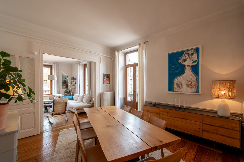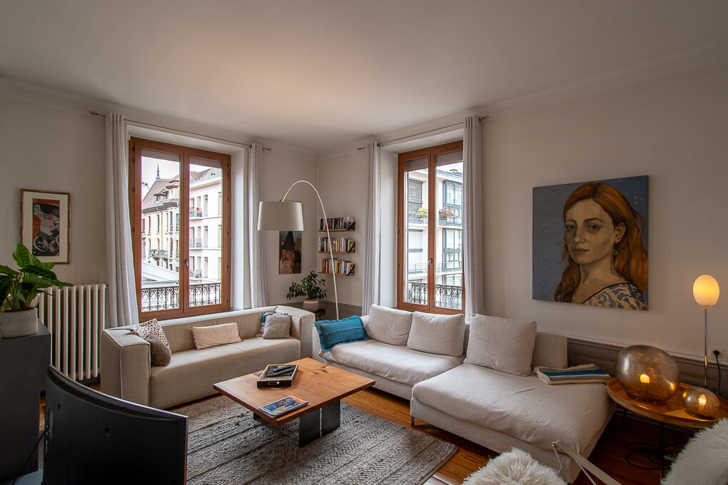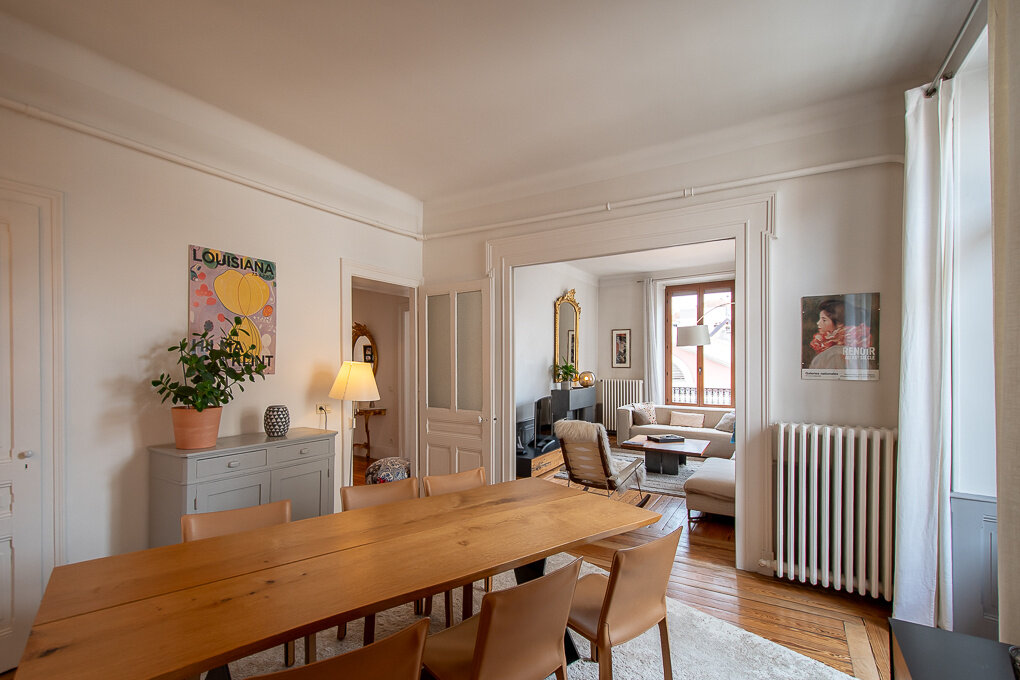Dans un bâtiment du XIXe siècle niché au cœur d’Annecy, magnifique appartement de 118 m2 à l'authenticité préservée et aux généreux volumes baignés de lumière naturelle.